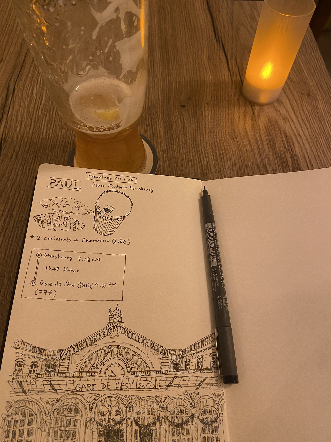 안경은 다행히 10분 만에 수리가 되었다. 무료로 안경점에서 고쳐주었다. 당연히 돈을 내야 할 줄 알았지만. 무료였다. 프랑스도 나쁘지 않았다. 기분이 바로 회복되었다. 바로 근처에 한인마켓이 있어 엄마와 구경을 했다. 원래는 근처의 오페라 극장까지 갈 생각이었지만, 시간이 조금 빠듯하기도 해서 나중에 가기로 하고 아시아 마켓에서 먹을 것만 사서는 호텔로 돌아왔다. 호텔로 돌아오면서, 혼자 시간을 가진 지 너무 오래된 것 같았다. 조금 혼자 있고 싶은 생각이 들었다. 한인마켓에서 사 온 음식들로 저녁을 먹으며 월드컵 4강 경기를 보려던 계획이었는데, 시간이 제법 많이 남았고 심심해서 엄마에게 근처 바에 가지 않겠냐고 제안했다. 엄마가 엄마는 호텔에서 쉬고 계시겠다고 해서 나 혼자 밖으로 나왔다. 자유시간이었다. 혼자 근처 바에 가서 그림을 그리면서 맥주를 마셨다. 맥주를 두 잔쯤 마시니 기분이 개운해졌다. 생각해보니, 밤마다 저녁을 많이 먹어서 그랬던 건지, 저녁 후 밖에서 술 한잔 하면서 대화를 나눈 기억이 없다. 여행을 충분히 즐기지 못했던 것 같아 뒤늦은 아쉬움이 밀려온다. 호텔로 다시 돌아간다. 엄마는 핸드폰으로 한국에 연락을 하시면서 종종 일을 하셨다. 그런 모습을 보니 괜히 쉬러 와서도 쉬지 못하는 모습에 기분이 상했다. 하지만 생각해보면, 엄마가 일을 하실 만큼 혼자 시간을 보내게 내버려 둔 나의 잘못이다. 내가 계속 상대해드렸어야 했다. 왜 그걸 그때는 생각하지 못했을까? 사람은 후회의 동물이다.