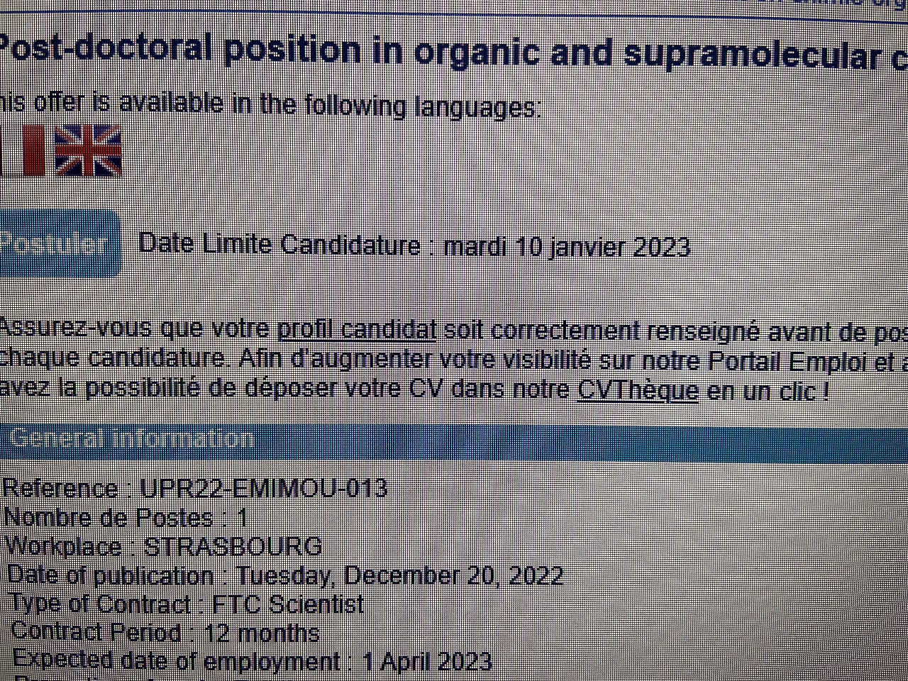 나는 1년 6개월의 계약으로 프랑스 연구소에서 박사 후연구원으로 일하고 있다. 이제 1년 하고도 한 달이 지나서 나의 계약은 5개월이 남은 상태이다. 약 두 달 전에 보스와의 마지막 미팅에서 계약 연장에 대한 의사를 물었을 때 내가 확실하게 대답을 하지 않은 상태였고, 그 이후 연장에 대한 얘기를 마무리 짓지 못하고 시간이 흘렀다. 이곳에서의 생활이 만족스럽기도 하고, 하고 있는 연구에서 결과를 내고 싶은 욕심 때문에 계약을 연장하고 싶은 것이 요즘의 나의 심정이다. 하지만 보스를 그냥 찾아가기가 애매해서, 하고 있는 실험에서 뭔가 결과가 나오면 실험 결과를 가지고 찾아가 얘기를 하면서 자연스럽게 연장에 대한 얘기를 꺼내는 게 나의 계획이었다.