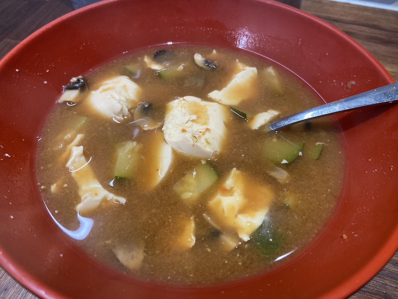 육수를 내기는 귀찮았다. 배가 고팠으니까. 한국인에게 선물 받은 코인육수를 생각해 냈다. 물을 3컵 정도 넣고는 코인육수 하나를 까서 집어넣었다. 간단하게 육수가 준비되었다. 시판된장을 꺼내서, 크게 두 스푼 푹 떠서 육수에 풀어주었다. 고춧가루도 살짝 한 스푼 넣어준다.냉장고에서 된장찌개에 넣을 채소들을 꺼내서 준비해 본다. 쥬키니, 양송이버섯, 양파 정도가 있다. 충분하다. 모두 깍둑 썩기 모양의 비슷한 크기로 잘라준다. 재료들은 크기가 일정하면 보기도 좋다. 된장찌개는 그냥 다 때려 넣고 끓여내는 편이기에, 재료들을 모두 듬뿍 된장물에 넣어버렸다. 팔팔 끓으며 먹기 좋게 약간 졸아들었을 때, 순두부를 댕강댕강 잘라서 집어넣었다. 순두부는 오래 끓여줄 필요 없으니 아주 약간만 끓여내 주었다. 마지막으로 얼마 전 파리에서 사 온 동결건조 청양고추가 생각나서 몇 조각 넣었다. 매운 것을 잘 못 먹지만, 가끔 청양고추의 매콤함과 향이 찌개의 맛을 올려준다고 느꼈기 때문이다.