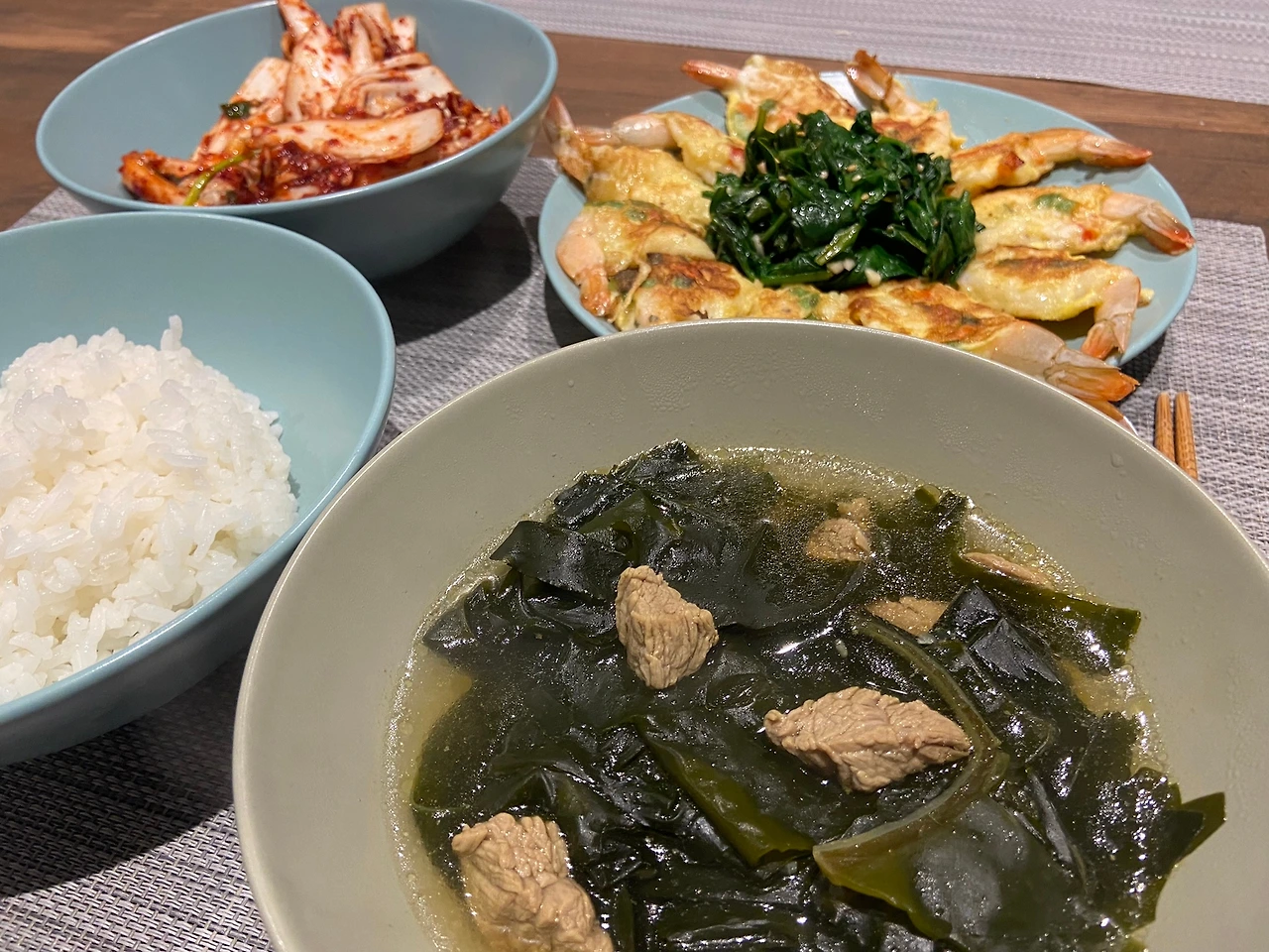 미역국은 어려울 게 없다. 좋은 고기를 사고, 적당량의 미역만 잘 불리면 끝이다. 예전에 연예인들이 시골에 가서 요리하는 프로에 게스트로 온 배우가 엄청 좋은 고기를 사 왔는데, 그걸로 소고기 뭇국을 끓이는 장면이 나왔었다. 유튜브에서 댓글들이 저 좋은 고기를 국으로 끓여버리냐며 타박하는 게 주를 이뤘는데, 거기서 한 댓글이 구이용 고기로 국 끓여보면 정말 맛있다고 한번 해보라고 적혀있었다. 그게 기억에 남았다. 이곳에 와서 마트에서 고기를 살 때, 이 나라 말을 몰라서 부위를 정확히 알 수가 없었다. 그래서 구이용이라고 적힌 것을 사 와서 국을 끓이곤 하는데 매번 성공이다. 미역국의 고기만큼 중요한 게 있다면 바로 밥이다. 미역국에 밥은 무조건 백미다.