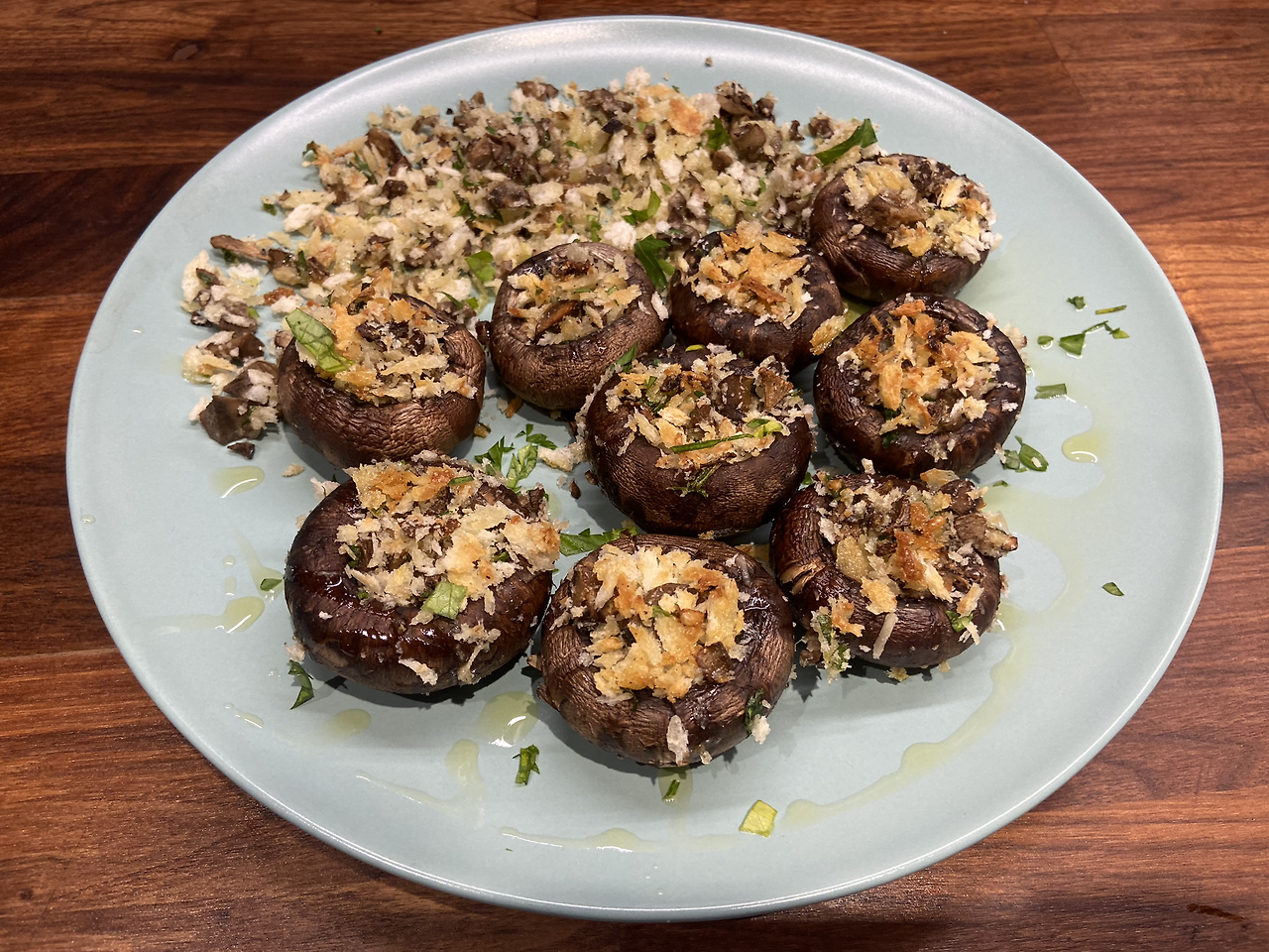 퇴근 후 바로 냉장고를 뒤져 요리를 하기 시작했다. 침대에 틀어박히기 전에 사두었던 채소들이 있다. 우울함이 있을 때는 묵직한 육류들보다는 채소 위주의 식단이 도움이 되는 것 같다. 가지와 치즈를 꺼낸다. 가지를 얇게 잘라서 오븐에 구워내어 둥글게 잘 말리면 치즈반죽을 넣어 돌돌 말아줘서 토마토소스를 얹어 오븐에 구워낸다. 가지 롤라티니다. 좋아하는 요리다. 버섯을 꺼내 속을 파내고 빵가루와 치즈가루를 섞어 다시 속을 채워서 오븐에 또 구워낸다. 좋아하는 채식 요리들을 예쁘게 접시에 담아내니 기분이 한결 나아진다.
