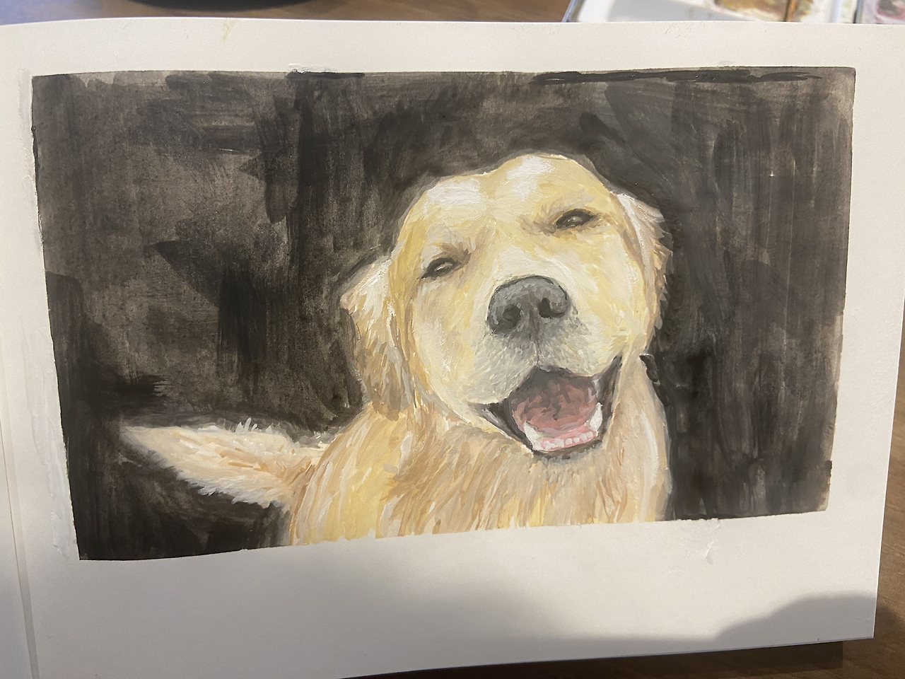 다시금 그림을 그리려고 스케치북을 꺼내고 물감과 붓을 꺼낸다. 그런데 뭘 그릴지 모르겠다. 이전에는 주로 내가 요리했던 음식들을 그리고는 했는데, 최근 요리를 한 게 그다지 없었고 그리고 싶은 음식이 없었다. 그래서 생각한 게 내가 좋아하는 개다. 구글링으로 나의 꿈의 개인 레트리버의 사진을 찾아서는 레트리버를 그린다. 어딘가 비율이 이상해서 온전히 맘에 든다고 말할 수는 없지만 그래도 오래간만에 하나를 그려서 기분이 좋았다.