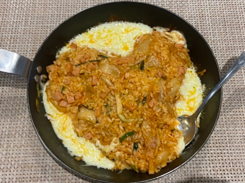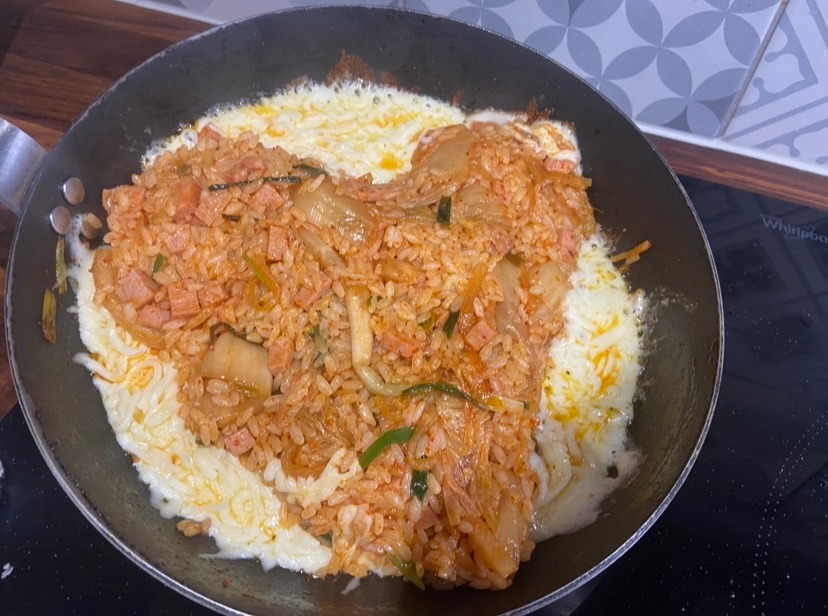 며칠이 지나고, 일요일 점심 또다시 뭘 먹을지 고민이 되어서 다시 한번 김치볶음밥을 하기로 한다. 김치를 볶고 밥을 넣어 볶아준다. 어떤 볶음밥이라도 기름을 아껴서는 안 된다. 기름이 모든 밥을 코팅할 수 있게끔 넉넉히 기름을 넣고, 김치 국물이 모두 날아가고 밥이 꼬들꼬들해질 때까지 계속해서 볶아내 준다. 냉장고에 치즈가 있어서 치즈를 위에 뿌려 치즈김치볶음밥을 먹을까 했는데, 치즈를 밥 위에 얹어 녹이는 게 아니라, 팬 위에 바로 부어 그릴드 치즈 형태로 만들면 어쩐지 더 맛있지 않을까 하는 생각이 들었다. 밥을 한데 모아 못생긴 하트를 만들어 주고, 프라이팬의 남은 공간에 넉넉하게 모차렐라 치즈와 에멘탈 치즈를 섞어 뿌려주었다. (치즈의 나라 프랑스에 있기에 냉장고에 항상 각종 치즈가 넉넉히 구비되어 있다.) 그런 후, 중 약불에서 치즈가 녹기를 기다린 후, 불을 끄고- 프라이팬 채로 밥을 먹기 시작한다. 치즈 부분과 밥을 함께 떠먹어보니, 치즈가 바닥은 살짝 구워지고, 위는 녹아서 부드러우니 그냥 밥 위에 뿌려 녹인 치즈보다 맛있었다.