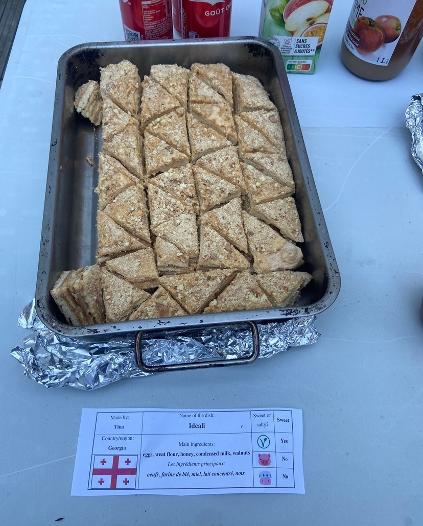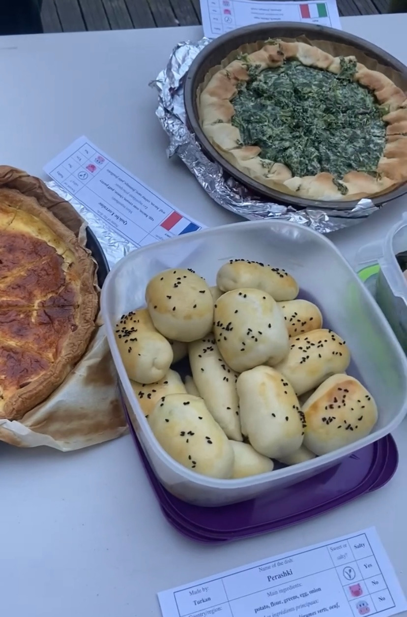 이렇게 완성된 치킨을 들고 포트럭 장소에 찾아간다. 이번에는 아시아는 나 한 명이다. 대부분 유럽이다. 프랑스, 레바논, 이탈리아, 루마니아, 조지아, 페루에서 온 사람들이 모였다. 프랑스 애들은 보통 치즈가 들어간 요리들을 준비해 온다. 맛이 있지만 크게 특별하지는 않다. 이탈리안은 이번에도 라자냐였다. 다른 친구들의 요청에 의한 것이었다. 레바논 친구가 만들어준 샐러드가 가장 새롭고 맛있었다. 내가 인터넷에 섬 나 봤던 sumac 향신료를 넣어 새콤함이 있었고, 특이하게 튀긴 칩을 넣어줘서 식감까지 좋았다. 여러 요리 중에서 자랑스럽게도 내 치킨이 가장 먼저 바닥을 드러냈다. 매운 요리라서 일찌감치 기대한 친구들도 있었고, 간장마늘 치킨을 먹은 프랑스인 친구는 자기는 보통, 이런 튀김류를 안 좋아하는데 이건 너무 맛있다며 나중에 레시피를 알려달라고 했다. 매운 것을 좋아하는 친구들은 딱 즐기기에 좋은 매운맛이라며 좋아했다. 다른 요리들을 맛보며 사람들이 내 음식을 잘 먹나 살펴봤는데, 몇몇 친구들이 치킨 근처에서 빈 바닥을 포크로 긁고, 남은 튀김 부분까지 가져가는 것을 보며 이들이 진짜 맛있어한다는 것을 알 수 있었다.