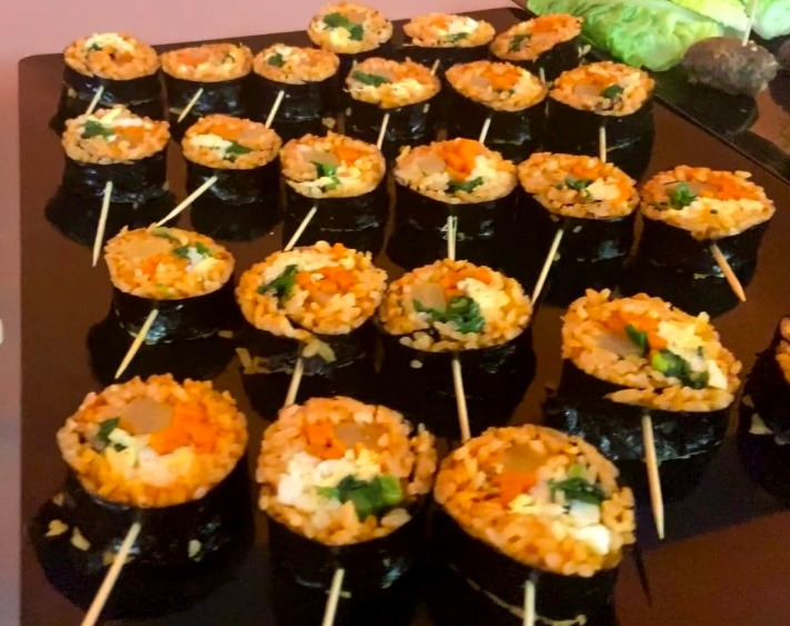프랑스에 와서 한국에 있을 때와 달리 개인 시간이 많아서 매일 요리를 하기도 하지만, 외국인들을 위해 요리를 할 수 있는 기회들이 몇 번 있었다. 이런 경험을 하면서 내가 정말 요리하는 것을 좋아함을 다시금 느끼고 있다. 지금까지 외국인연구원 커뮤니티에서 30명을 위해 저녁을 요리했었고 (https://brunch.co.kr/@hwakwi/188) 11명의 프랑스인들에게 떡볶이 쿠킹 클래스를 진행했다 (https://brunch.co.kr/@hwakwi/205) 여기에 이 날의 핑거푸드까지 성공적으로 마치면서, 사람들을 위해 요리하는 게 너무 즐거웠다. 이후 또 이런 기회를 만들고 싶어서 한글학교에 가정의 달행사를 제안하고는 45명을 위한 점심을 준비하게 되었다. (https://brunch.co.kr/@hwakwi/208) 뿐만 아니라 쿠킹클래스에 대한 요청들도 있어서 두 번의 쿠킹클래스를 더 진행하였고, 조금은 종교적인 사람이 되고 싶어서 한인 성당을 찾아갔다가 나를 알고 계시는 분이 있어서 한인성당을 위해 요리까지도 하게 되었다. 종종 친구와 가족들이 말한다. 프랑스에 요리하러 갔냐고... 혹시나 모르는 분을 위해, 나는 한국에서 박사학위를 받고 (화학전공) 프랑스에서 박사 후연구원으로 일하고 있다. 요리는 내 취미이다- 직업이 아닌 취미로라도 인정을 받고 사람들이 좋아해 주니 뿌듯하다. (오히려 본업에서 성과가 없어 힘든 요즘이다.)