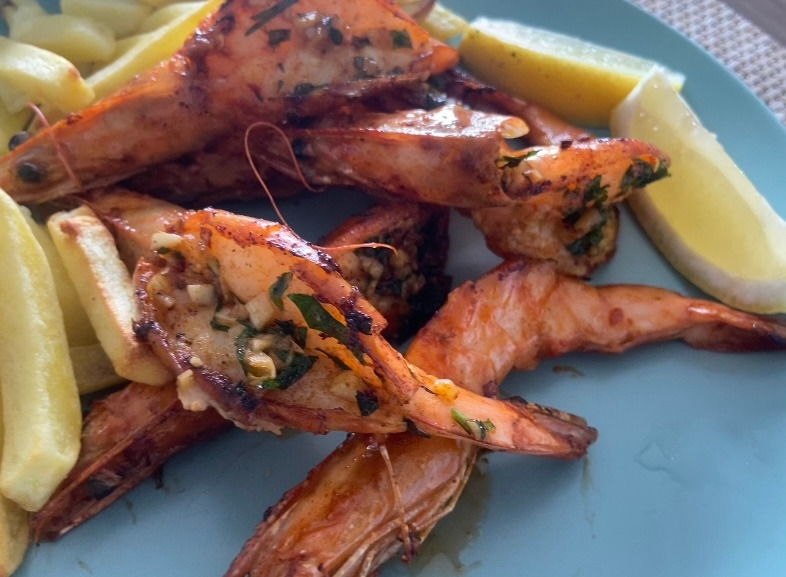 새우는 금세 다 익는다. 이렇게 구워진 새우와, 바삭하게 오븐에서 데워진 감자튀김을 그릇에 담고는 레몬을 잘라 곁들여 낸다. 새우는 머리부터 먹는다. 먼저 몸통과 머리를 분리시키고는 머리통 부분을 절반만 씹어 안의 내장들을 다 맛본다. 고소하다. 그런 후, 새우의 다리 부분들을 제거하고는 어느 정도 껍질도 살과 함께 씹어 먹는다. 바삭하다. 그러다가 부드럽고 탱탱한 살만 맛보고 싶어 껍질까지 까서 또 맛을 본다. 어떻게 먹어도 다 맛있다. 중간중간 바삭한 감튀도 잊지 않는다. 식당에서 사 먹었던 메뉴보다는 소박해 보이는 비주얼이지만, 그 맛은 결코 뒤지지 않는다. 내가 했지만 맛있다. 집에 손님이 온다면 손님메뉴로도 손색이 없는 요리다. 만족스럽다. 종종 냉동새우가 아닌 이런 생새우도 좀 사 먹어야겠다.