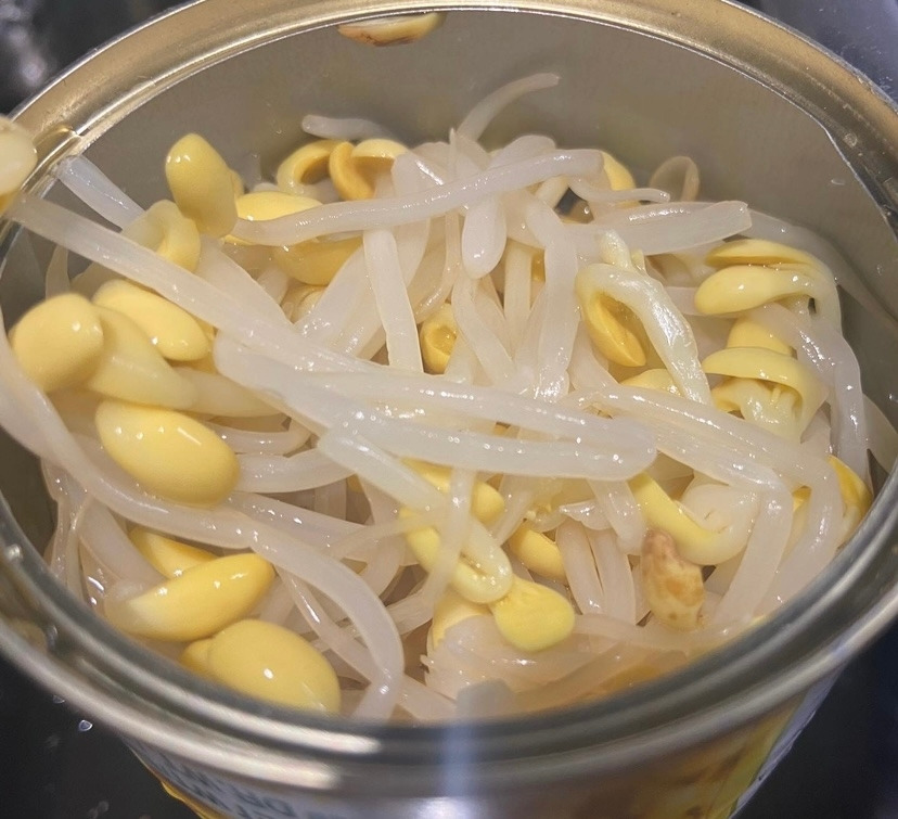 하지만 맛이 없을까 봐 걱정이 되었다. 콩나물은 아삭한 식감이 중요하지 않은가. 어쩐지 통조림이니 물컹한 식감으로 괜히 하나도 못 먹고 버리는 건 아닐까 하는 염려가 되었다. 무슨 요리를 할까 고민하다가 귀하게 얻은 콩나물이니 콩나물로 제대로 된 한 끼를 만들고 싶었다. 그래서 생각한 요리가 냉장고 속 소고기를 이용한 콩불이었다. 콩나물 통조림을 열어본다. 물속에 콩나물이 담겨있다. 콩불에 넣어 양념을 입히기 전에 콩나물 한 줄기를 건져내 한 번 씹어본다. 어? 제법 아삭한 식감이 살아있다. 나쁘지 않다. 잘 만든 제품이다. 콩불을 만들어서 맛본다. 매콤하게 양념된 고기와 아삭한 콩나물의 식감이 잘 어울린다. 맛있는 요리다. 콩나물 한 캔은 콩불 1인분 요리할 정도의 양이었다. 아버지가 드신 다면 두 젓가락이면 끝날 양이다 싶었다.