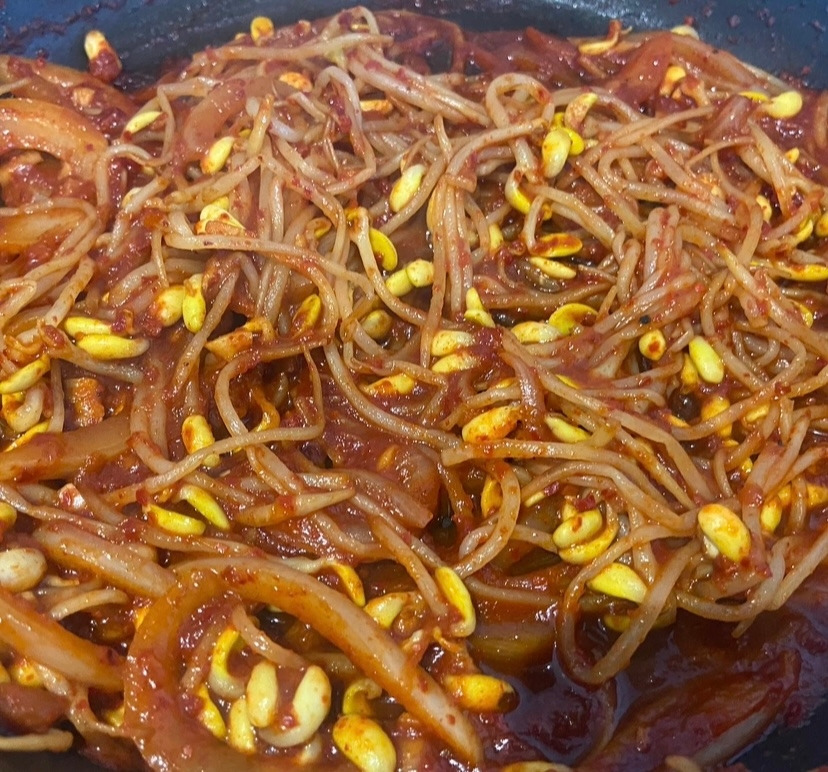 나는 아버지처럼 콩나물을 좋아하는 사람을 보지 못했다. 그래서 어릴 적부터 아버지가 함께 식사하실 때 콩나물 반찬은 보통의 반찬 접시가 아닌 커다란 대접에 나오기도 했다. 대식가 먹방 유튜버들의 짜장면 한 입을 본 적이 있는가. 우리 아버지의 콩나물 먹방이 그런 모습이다. 반찬 그릇에 있는 콩나물 무침 같은 것은 그저 한 젓가락, 한 입으로 끝나버린다. 그렇다고 아버지가 대식가이거나 식사 속도가 빠른 사람인 것도 아니다. 오직 콩나물에 대해서만 그렇다. 그러니 보고 있으면 더욱 신기하다. 콩나물이 들어간 음식에서 콩나물은 뭐든 잘 드시지만 가장 좋아하시는 건 우리 엄마표 콩나물 볶음이다. 보통의 빨간 콩나물 무침과 이 데친 콩나물에 양념을 버무려 주는 거라면, 우리 엄마의 콩나물 볶음은 데쳐낸 콩나물에 양념을 해서 한번 더 조려내는 거다. 그러니 따뜻하게 먹는 반찬이다. 다른 곳에서는 먹어보지 못한 우리 엄마만의 시그니쳐 요리라 하겠다.