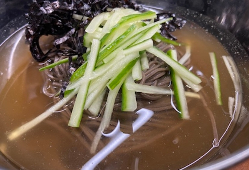 냉면 육수가 있으니 할 수 있는 게 제법 있었다. 냉면 육수에 냉면면이 아닌 소면, 메밀면 등을 이용해서 다양한 냉국수들을 해먹었다. 소면을 삶아서 김치를 얹고 참기름을 살짝 뿌려준다. 냉면육수를 부은 후, 오이 고명과 깨를 좀 뿌려주니 김치말이국수가 금세 완성이다. 너무 맛있어서 이틀 연속으로 김치말이 국수를 먹었다. 냉면면이 아닌 매밀면을 삶아서 오이와 김가루를 고명으로 곁들여 냉면육수와 함께하니 물막국수다. 또한 육수에 마른미역을 물에 불려 적당한 크기로 잘라주고 채 썬 오이까지 곁들이니 오이미역냉국이 되었다. 조미료 육수는 만능이었다. 한 솥 끓여 소분해서 냉동실에 얼려뒀던 냉면 육수가 바닥나서 얼마 전 다시 육수를 끓여 냉동실에 넣어뒀다. 이번 여름은 먹는 것을 사랑하는 배우의 조미료 냉면 육수 덕분에 시원하게 날 것 같다.