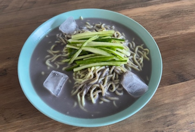 여름은 점점 더 더워지는데 프랑스에는 딱히 여름 요리라고 할 만한 게 없는 모양이다. 기껏해야 길거리에 아이스크림 가게에 사람들이 전보다 더 많이 줄 서있는 게 보이는 정도이다. 여름이면 에어컨을 켜고 아이스 아메리카노를 마시고, 냉면, 콩국수를 먹는 한국에 비해 더운 여름 나는 법을 모르는 것 같다. 여름이 다가오며 점점 더위가 느껴질 때쯤 나는 냉동실에 얼음을 얼리기 시작했다. 더 이상 따뜻한 커피를 마실 수가 없었기 때문이다. 난 한국에 있을 때 한 겨울에도 냉면을 먹을 만큼 냉면을 좋아했다. 그런 내가 여름에 냉면을 얼마나 잘 먹었겠는가. 프랑스에는 가장 큰 파리에서조차 냉면 파는 식당이 없다. 냉면을 대신해서라도 차가운 면이 먹고 싶었고 마트를 둘러보다 검은콩을 발견하고는 한 봉지 사들고 왔다. 콩을 불리고 삶아낸 후, 갈고 체에 걸러 검은콩 국물을 만들었다. 면을 삶아 콩 국물을 붓는다. 더 차갑게 얼음을 동동 띄워준다. 검은 콩국수다. 매일 따듯한 음식들만 먹다가 시원한 음식을 먹으니 살 것 같다. 역시 난 이열치열이 싫다. 더우면 그냥 냅다 차가운 것을 먹는 게 좋다.
