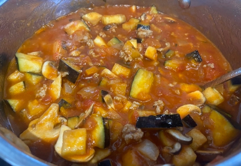 먼저 소고기 다짐육을 올리브오일에 볶아준다. 그런 후, 적당한 크기로 잘라둔 가지를 넣고 함께 볶아주고 토마토소스를 모두 함께 잘 섞어준다. 가지가 약간만 숨이 죽어도 이제 충분하다. (냉장고에 버섯이 남아있어서 버섯도 넣었다.) 라자냐는 오븐에서 최소 40분은 익을 거라서 오븐에서 모든 재료가 충분히 익을 거다. 보통은 리코나치즈를 섞어서 토마토소스 외의 다른 층을 만드는데, 집에 리코타치즈가 없어서 베샤멜소스로 대신했다. 베샤멜은 간단하다. 버터, 밀가루, 우유, 소금, 후추 정도여도 맛은 충분하다. 라자냐팬에 토마토소스를 바닥에 건더기 없이 한번 깔고 그 위에 순서대로 라자냐면 (안 익혀도 어차피 오븐에 들어가면 수분 가득 토마토소스에 의해 다 익음)/토마토소스/베샤멜소스를 얹어주며 층을 만든다. 맨 마지막 층은 라자냐면 위에 토마토소스를 얹고 바로 모차렐라 치즈를 얹어준다. 그런 후, 팬 윗부분을 알루미늄 포일로 덮어준 후 섭씨 170도 오븐에서 40분, 포일 제거하고 15분 정도 추가로 구워준다. 라자냐를 한 김 식히고 (바로 자르면 다 흘러내리고 층 유지가 안됨) 적당한 크기로 잘라 통에 담아 냉동실에 보관한다.