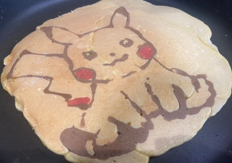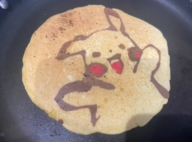팬케이크를 구울 때는 기름을 많이 두르는 게 아니라 팬에 코팅되듯이 입혀주면 된다. 살짝 두르고 닦아내 준다. 처음이니 불은 약불로 해줘서 조심스레 만들기 시작했다. 먼저 기본 반죽으로 테드리를 그려준다. 색이 나기 시작할 때쯤, 하나씩 색을 입혀 캐릭터를 만들어준다. 이제 뒤집어서 제대로 나왔는지 볼 차례다. 휙 뒤집어본다. 귀여운 피카추다. 성공이다. 완벽하지 않지만 귀여우니 된 거다. 두 번째 피카추도 만들어 본다. 이번에도 귀엽다. 자신감에 키티를 해보는데 반죽이 갑자기 푹하고 나오는 바람에 키티가 엉망이 됐다. 자만하면 안 되는 거다. 그림을 섬세하게 작게 그리지 못하다 보니 팬케이크가 크기가 커졌다. 크니까 많이 먹으면 되는 거다. 딸기를 곁들여 피카추를 귀엽게 꾸며본다. 어른이지만 귀여운 건 좋다. 우리 어른이들도 귀엽게 캐릭터 팬케이크를 만들어 먹어보자.
