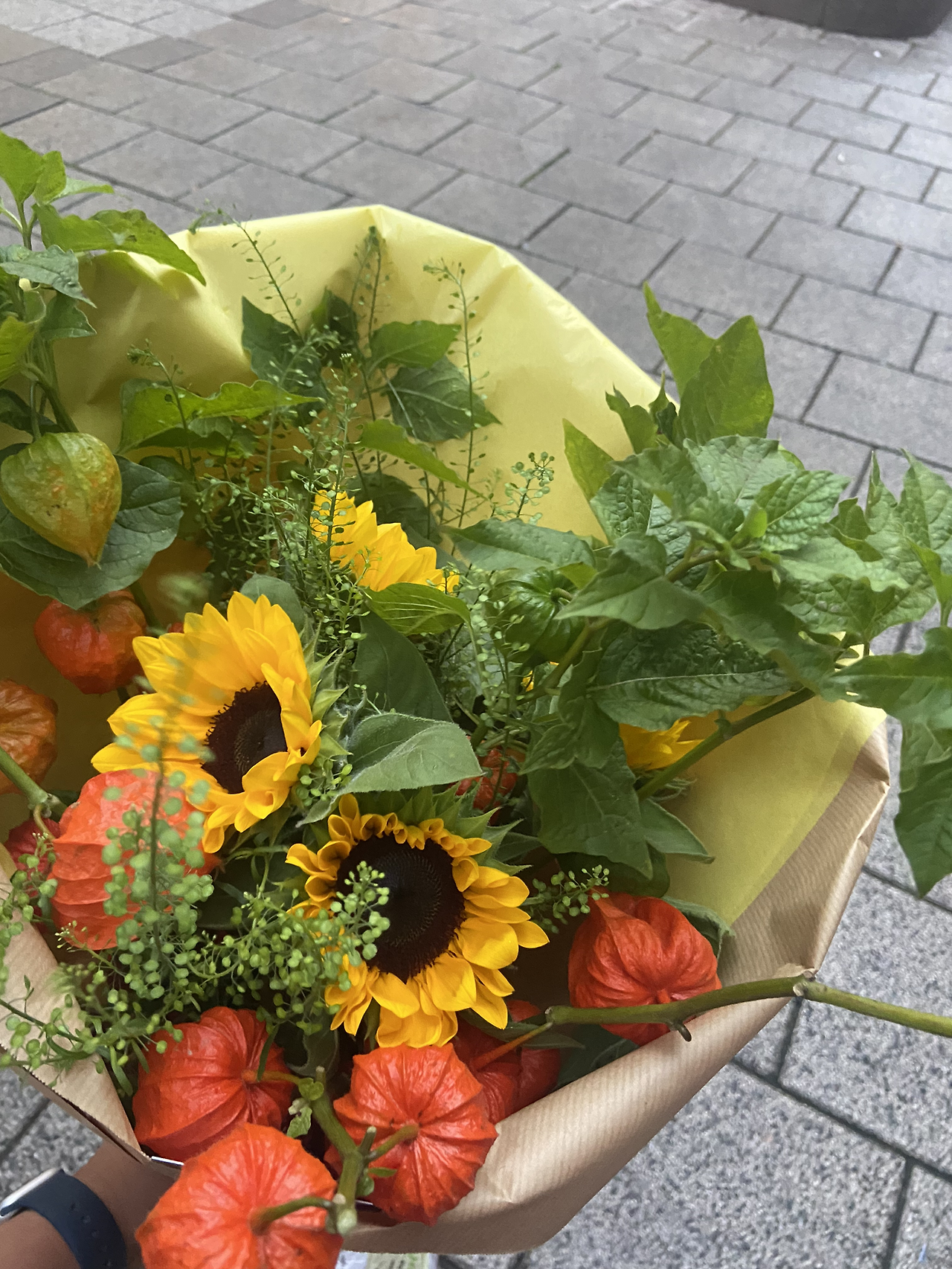 퇴근 후, 시간에 맞춰 시내 중심가에 있는 지인의 집으로 갔다. 다음날 오전에 시내에서 일정이 있는 걸 아는 지인은 짐을 챙겨 와서 자신의 집에서 자고 가라고 했기에 옷가지를 챙겨가면서 짐이 좀 많아졌다. 여기에 닭발, 소주 두 병, 그리고 생일 선물로 받은 와인까지 있어서 짐이 제법 되었다. 지인 집으로 향하는 길에 꽃집이 보였다. 생일을 맞이해서 기분이 좋아 꽃을 사고 싶었다. 하지만 사도 집에는 다음날 오후에나 갈 테니 나에게 사주는 건 할 수 없었기에, 초대해 준 지인에게 선물하려는 맘으로 꽃을 고른다. 가을 느낌으로 준비해 본다. 풍성하고 예쁘다. 35유로였다. 싸지 않다. 하지만 꽃을 산 기분이 좋다. 난 이 기분을 35유로에 산거다. (조금 사치긴 하지만 일 년에 한 번인 생일이니 이 정도는 괜찮지 않을까?)