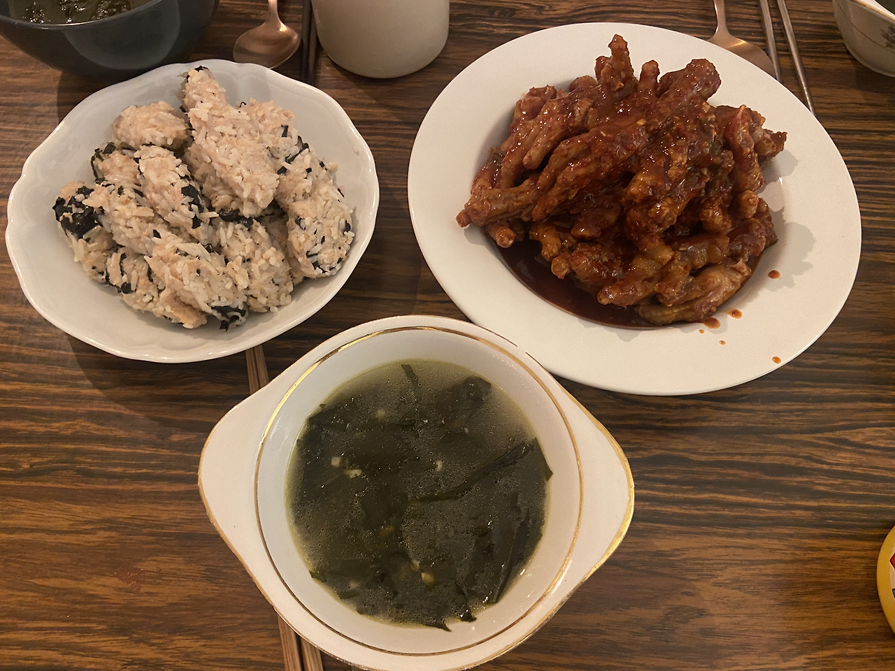 지인 집에 도착한다. 닭발과 먹을 주먹밥을 계란찜을 준비해 줬고, 다른 지인이 맥주와 미역국을 가지고 왔다. 미역국이 먹음직스럽게 보였다. 원래도 좋아하는 미역국이지만 내 생일을 맞이해 축하해 주는 맘으로 끓여준 미역국은 더 맛있게 보였다. 그렇게 한 상 차려진다. 미역국을 먼저 맛본다. 다른 이들은 닭발을 먹는다. 닭발을 데우면서 너무 맵지 않아 고춧가루도 더 넣고, 결국 마지막엔 매운맛을 위해 불닭볶음면의 소스를 1/3 정도 넣을 수밖에 없었다. 매운맛이 너무 없는 닭발은 어쩐지 매력이 없어서 어쩔 수 없었다. 다들 닭발을 잘 먹었다. 맛있다 해 다행이다 싶었다. 요리를 하면서 막걸리로 목을 먼저 축인다는 게 시작을 막걸리로 하게 되었다. 막걸리를 두 병 정도 마신 후, 그다음은 소맥으로 넘어갔다. 내가 제안한 것이 병맥주가 작은 사이즈기에 맥주를 한두 모금 마시고 병맥에 소주를 부으면 소맥이지 않냐고 해서, 모두 병째 소맥을 말아먹게 되었다. 그렇게 소맥을 계속 마시며 닭발을 먹었다. 그렇게 생일을 닭발에 소맥으로 맞이하게 되었다. 생일이 되는 순간, 한국에서 언니가 자지 않고 날 위해 기다렸다가 메시지를 보내주었다. 생일 축하한다며 50만 원을 선물로 줬다. 요즘 가난하게 살고 있는 나였기에 너무도 고마웠다. 언니는 역시 좋은 사람이다.