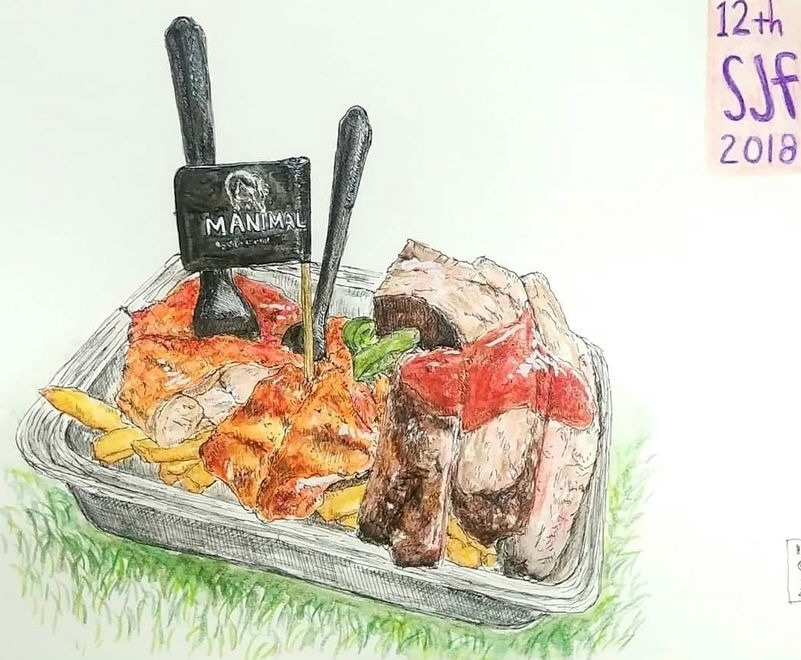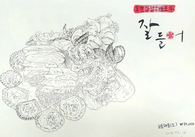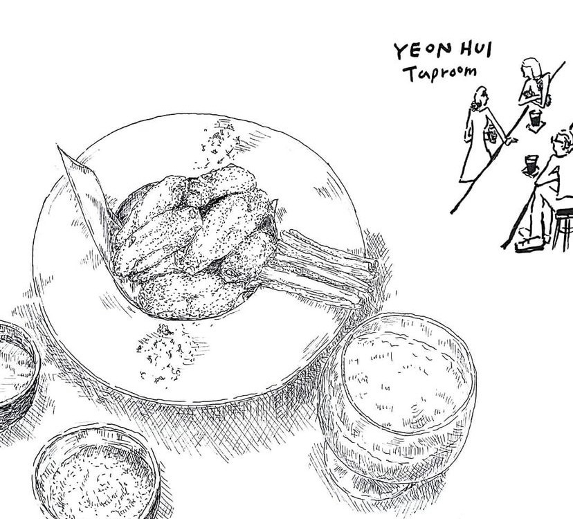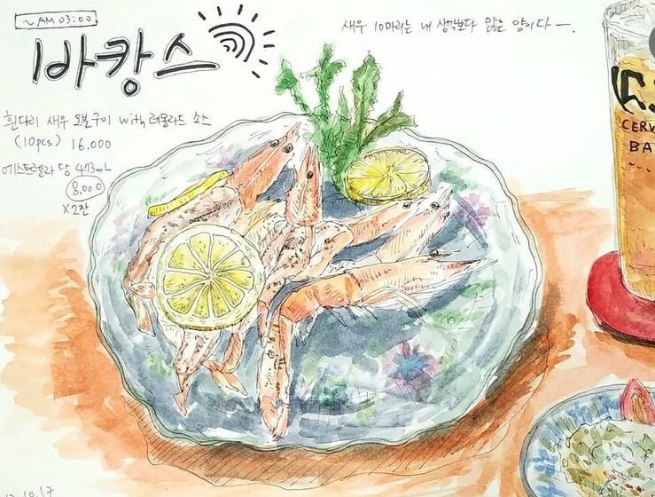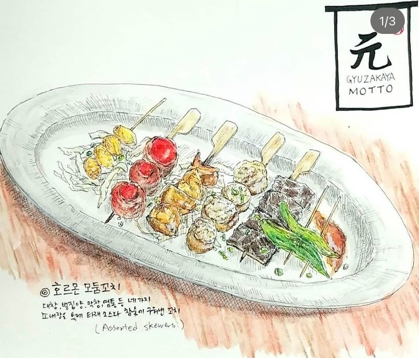 그림 도구들은 어느 정도 갖춰줬다. 그림은 주로 음식을, 내가 먹은 음식을 그렸다. 그렇게 한 달 가까이 그리다 보니 새로 그릴 것들이 부족해지더라. 매일 먹는 게 비슷하다 보니 그려야 할게 반복되면서 재미가 없어지더라. 그래서 그림 그릴 소재를 위해 안 가본 식당을 찾아가기 시작했다. 원래 맛있는 것을 좋아하지만 맛집을 찾아다니거나 하지는 않았었다. 그러다 이렇게 일상 속에서 새로운 그림 소재가 필요해지면서 그림 그릴 소재를 위해 퇴근 후나 주말에 맛집을 찾아가게 되었다. 매번 새로운 그림을 그리고 싶은 마음에 아무리 맛있는 곳도 또 가지 않고 계속 새로운 곳을 찾았던 것 같다. 만약 같은 곳을 가더라도 다른 메뉴를 시켰다. (다른 그림을 그려야 하니까 말이다.)