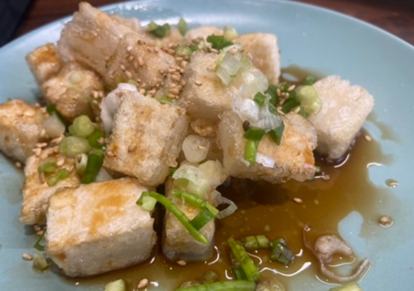 두부에 부침가루를 묻히고, 계란물에 담근 후 구워내 준다. 다진 파, 다진 마늘, 간장, 식초, 참기름에 약간의 물로 간을 맞춘 양념장을 준비한다. 구운 두부를 소스에 찍어 냠냠 먹어준다.