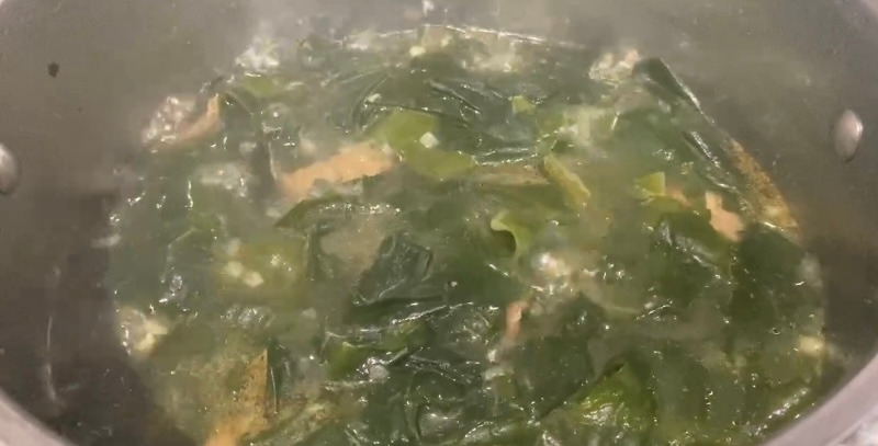 미역국은 쉽다. 먼저 미역을 불려준다. 마른미역은 물에 불면 10배로 늘어나니 적당량만 불리도록 주의하자. 나는 미역을 좋아해서 항상 조금 많이 넉넉히 불리는 편이다. 불린 미역은 먹기 좋은 크기로 잘라 준비해 준다. 냄비에 참기름을 두르고 미역을 넣어 한번 볶아준다. 여기에 국간장도 한 스푼 넣어 함께 볶아준다. 그러다가 끓여둔 고기 육수를 부어준다. 고기도 잘라 넣어준다. 다진 마늘을 넣고 푹 끓여준다. 마지막에 간을 보고, 국간장을 조금 더 넣어주고 부족한 간은 소금으로 마무리해 준다. (국간장으로 모두 간을 하다가는 색이 너무 진해질 수 있다.)