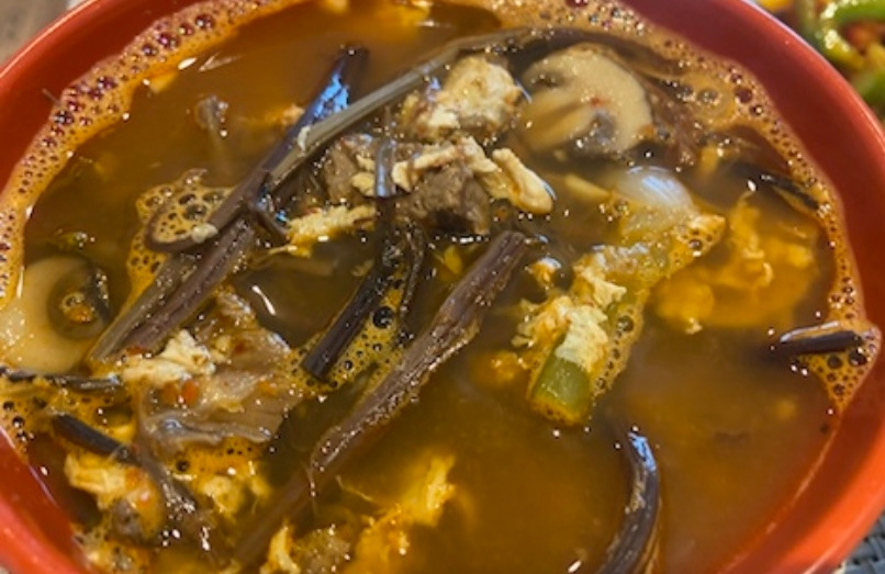 육개장은 사실 재료가 가장 많이 들어간다. 고사리도 넣고 토란대도 넣고 이것저것 많이 넣지만 다 귀찮을 땐 대파만 준비하자. (나는 프랑스라서 대파를 구하는 게 쉽지 않다...) 고기육수에 대파를 살짝 데쳐낸다. 국간장과 고춧가루, 약간의 액젓, 다진 마늘을 섞어 양념을 만든다. 고기와 데친 대파를 양념에 버무려준다. 숙주가 있다면 좋다. 숙주도 육수에 데쳐낸 후 함께 버무려준다. 간이 배어들도록 잠시 놔둔다. 그런 후, 육수에 넣어 함께 끓여내 준다. 계란을 풀어 저어주고 마무리한다.