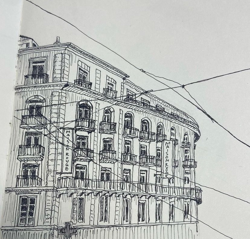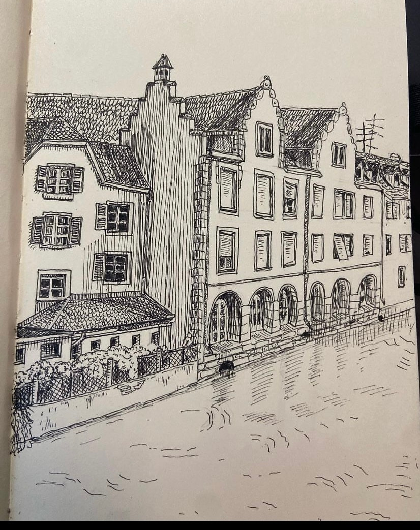 하루는 스트라스부르 어반스케치에서 함께 모여 그림 그리는 날임을 알았다. 매번 놓치다 드디어 늦지 않고 알았다. 이곳에 와서 알게 된 한국인 동생에게 얘기해서 함께 가기로 했다. 아침에 카페에 모인다고 해서, 갔더니 이미 아는 사람들끼리 인사하고 잠시 후, 바로 흩어져서 그림 그리고는 오후에 다시 모이는 거더라. 아무래도 어반스케치 자체가 목적인 사람들이라 그림 그리는데 더 정신이 팔려있는 듯했다. 동생과 함께 그림 그릴 만한 곳을 찾으며 한참을 걸었다. 야외에서 어반스케치를 직접적으로 하는 것은 거의 처음이나 다름없고, 평소에 음식 외에는 잘 그리지 않아서 조금 걱정되었다. 어떻게 그려야 하는지를 모르니 보이는 걸 다 그리려고 하는데, 문제는 내가 테크닉적으로 보이는 걸 그대로 그릴 수 있는 능력이 없다. 스트라스부르에서 미술을 전공 중인 옆의 동생은 나와는 비교가 되지 않게 깔끔한 선으로 딱 필요한 것들만 잡아서 그려내더라. 그런 스킬이 부러웠다. 어반스케치를 마치고 집에 와서는 나도 잘하고 싶었다. 건물 그리기를 좀 연습해 보고 다음에 야외에 나가서 그려야겠다고 생각했다. 그렇게 건물 그리기를 시작하였다.