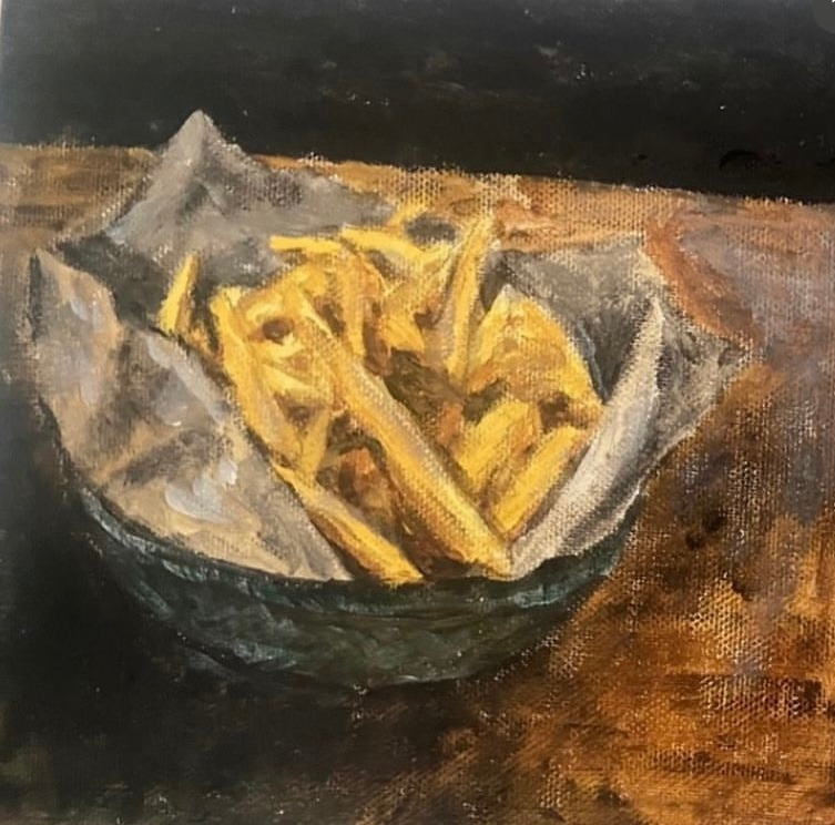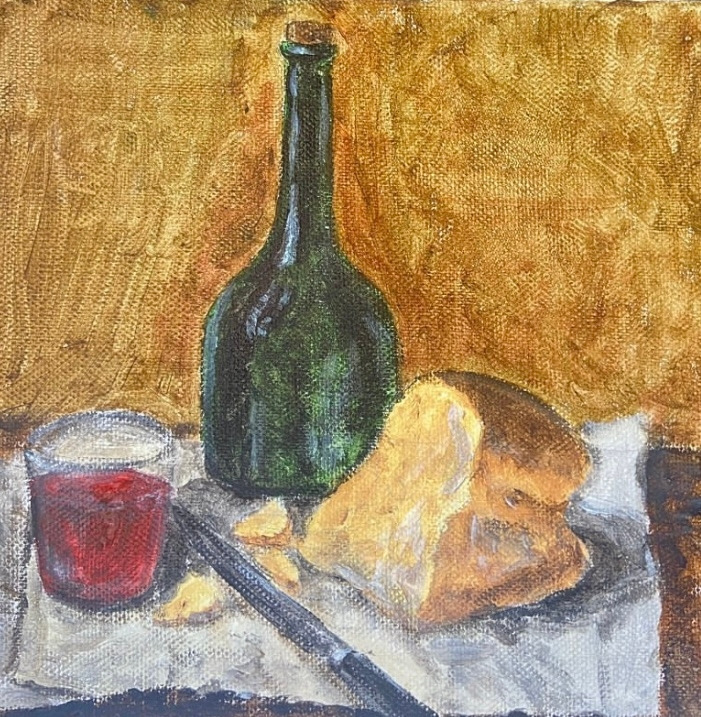살 때는 당장 집에 가서 그림을 그리고 싶은 마음에 두근두근했지만, 막상 집에 돌아와서는 사 온 것을 방 한 구석에 두고는 일주일을 그냥 지나쳤다. 그러다, '아 저거 사 왔었지?' 하고는 꺼내 들게 된다. (난 항상 이런 식이다.) 캔버스를 하나 꺼내든다. 뭘 그릴까 고민한다. 평소처럼 내가 요리했던 음식을 그려본다. 뜻대로 잘 그려지지 않는다. 세필붓이 없어서 세밀한 묘사 같은 건 어렵고, 조금 투박하게 그림을 큰 직하게 그려나가야 할 것 같아서, 평소와 다른 그림을 그려야지 싶었다. 인터넷을 뒤져본다. 그러다 한 프랑스 화가가 그렸다는 정물화를 발견하고는 따라 그려본다. 완전히 다른 그림이 되어버렸지만, 뭐 나름대로 좋게 생각하면 나름 느낌이 있다. 그렇게 나쁘진 않다. 이것을 시작으로 캔버스에 아크릴로 그림 그리는데 다시 재미가 붙었다. 너무 많이 빠지는 걸 경계하는 차원에서 매일 한 작품만 완성하기로 나 자신과 약속했다. (해야 할 다른 일들이 많아서)