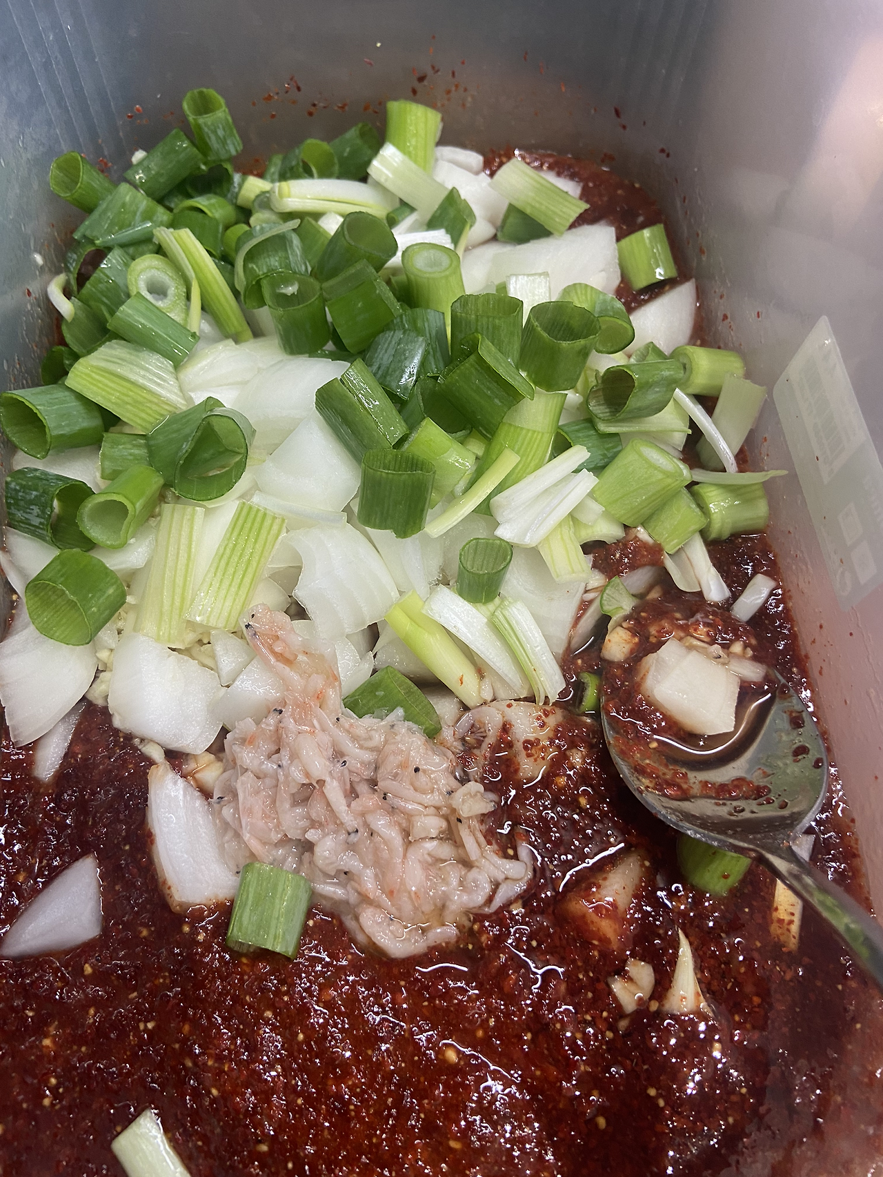 침대에 누워 유튜브를 보다가 살짝 잠이 들었다. 알람 소리에 깨서는 주방으로 간다. 깍두기가 절여지며 물이 나와 아래 물이 고였다. 체에 밭쳐 물기를 모두 제거해 준다. 하나 맛을 본다. 잘 절여졌다. 고춧가루와 찹쌀풀에 이제 양념들을 해야 한다. 냉장고에서 새우젓을 꺼내와서 듬뿍 한 스푼 넣는다. 그런 후, 멸치액젓도 듬뿍 부어준다. 엄마의 고향이 전라도라서 그런지, 난 항상 젓갈 듬뿍 넣은 김치를 먹으며 자라왔다. 그래서인지 나도 젓갈을 듬뿍 넣는 편인 듯하다. 다진 마늘이 없으니 직접 마늘을 모두 까서 다져줘야 한다. 마늘 까기는 너무 귀찮다. 하지만 마늘 없이 김치는 담그나 마나이다. 마늘은 필수이니 열심히 다져서 준비하는 수밖에 없다. 마늘을 크게 세 스푼 가까이 다져서는 모두 넣어준다. 그런 후 양파 하나도 깍둑썰기하여 넣어준다. 양파를 깍두기에 넣으면 가끔 씹힐 때 시원한 맛이 좋다. 단맛을 빼놓을 수 없다. 설탕을 넣는다. 꽤나 많이 들어간다. 그런 후 양념 맛을 본다. 충분히 짜면서도 살짝 단맛이 올라와야 맞는 맛 같다. 아직 김치 담그기는 감을 잡지 못해서 익기 전에 성공인지 여부를 모르겠다. 김치는 너무 어렵다. 양념은 그럭저럭 된 것 같으니 절여둔 무를 모두 넣고 버무려준다. 손으로 버무려야겠지만 장갑도 없고 손을 더럽히기 싫어서 숟가락으로 잘 저어 버무려준다. 그런 후 통에 모두 부어주고 윗면을 랩으로 덮어주고 뚜껑을 닫는다.
