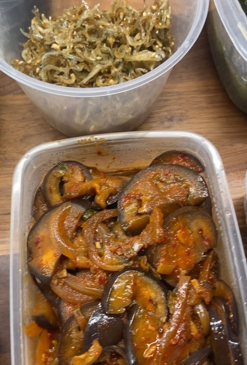 한 참 후 시간이 충분히 지난 후, 다른 재료들까지 요리하기 시작한다. 미역도 물에 불려서 소고기 반절은 소고기 미역국을 끓인다. 고사리를 삶아내고 물기를 짜고는 먹기 좋은 크기로 잘라준다. 육수 낸 고기, 육수에 데친 파, 고사리에 고춧가루, 다진 마늘, 국간장으로 먼저 무쳐내어 간이 들게 한다. 그런 후, 육수에 넣어 끓여내고는 마지막 계란을 풀어주고 육개장을 완성한다. 먼저 간단한 채소들을 볶아 볶음 겸 나물을 만든다. 쥬키니를 잘라 볶아내면서 새우젓으로 간을 하며 호박나물을 만들고, 버섯도 잘라서 볶아낸다. 가지는 전에 독일에서 사다둔 건데 일주일이 지났는데도 여전히 싱싱했다. 일본의 미즈나시? 인지 유튜브에서 봤던 물가 지를 만들려고 사 온 건데 레시피를 찾지를 못해 결국 그냥 냉장고에 방치됐던 가지였다. 가지를 고추장도 넣어서 매콤하게 볶아낸다. 취나물도 삶아내고는 액젓과 다진 마늘, 참기름으로 가볍게 무쳐낸다. 나물들을 할 준비를 하면서 고기로 육수를 내기 전 볶음고추장을 만들 생각으로 소고기 소량을 따로 잘라 뒀었다. 미리 빼둔 소고기를 잘게 다지고는, 다진 마늘, 간장, 다진 파 등과 함께 소고기를 볶아내고는 고추장을 넣어 함께 볶아 볶음고추장을 만들었다. 나물들로 비빔밥을 만들 생각이었다.