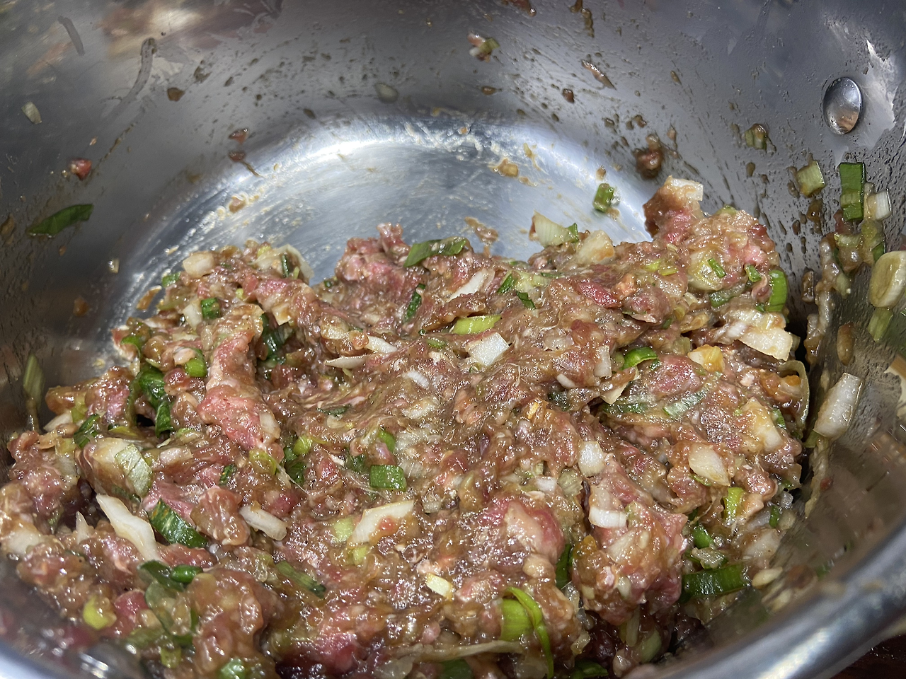 집에 돌아와 만두 빚기를 준비한다. 소고기 다짐육에 양념만 하면 된다. 파를 다져 넣고, 마늘이 씹히는 건 별로니 마늘가루를 넣는다. 파를 듬뿍 다져 넣고, 간장/설탕/참기름으로 간을 한다. 간이 충분한지 알기 위해 고기소를 조금 떼어내어 전자레인지에 돌려 익힌 후 맛을 본다. 삼삼하다. 만두피와 함께 먹어 맛을 내야 하니 간을 조금 더 세게 한다. 간장을 더 넣고, 설탕도 더 넣는다. 다시 전자레인지에 돌려 맛을 본다. 딱 맞다.