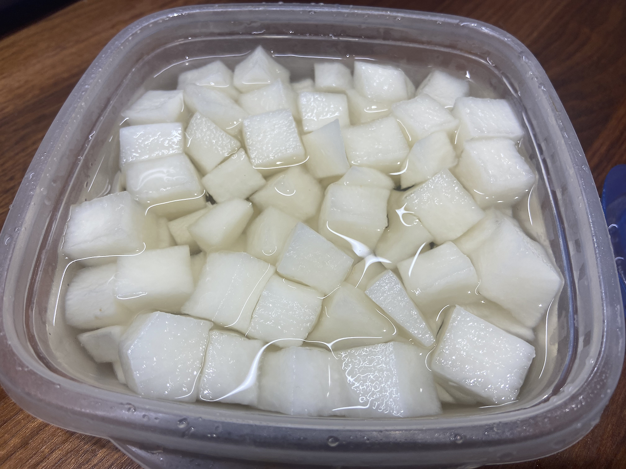 사람들에게 간단히 내 소개를 하고 시작한다. 제일 먼저 할 일은, 봉과 윙을 꺼내 소금과 후추로 간단하게 밑간을 해주는 것이었다. 그런 후, 양념을 만든다. 냄비에 간장 소스를 만든다. 그런 후, 만들어 온 소스를 미리 사람들에게 맛 보여 준 후, 이 소스가 있으니 오늘 만드는 간장마늘 소스에는 매콤하게 매운맛을 조금 추가한다며 칠리 플레이크와 동결건조 청양고추를 조금 넣어주었다. 다음은 양념소스이다. 양념들을 조합하여 냄비에 모두 넣고는 물을 조금 넣고 저어주며 살짝 끓인다. 소스는 아주 쉽게 완성되었다. 이제 튀길 차례이다. 처음부터 튀기는 봉과 윙을 넣으면 기름이 지저분해지므로, 초벌 튀김을 해온 순살을 먼저 튀긴다고 얘기를 한다. 순살을 튀겨서 꺼내주면서, 사람들이 소스에 치킨 맛을 보면서 내가 튀기는 모습을 지켜보게 한다. 소스에 하나 둘 찍어먹으며 다들 "음~"하면서 고개를 끄덕끄덕한다. 맛있다는 신호다. 하지만 양념치킨은 소스에 제대로 버무려서 줘야 하니까, 서둘러 치킨을 튀기고는 소스에 버무려서 접시에 담아낸다. 며칠 전 미리 만들어서 모두 잘 익은 치킨무도 꺼내준다. 외국인들이라 치킨과 치킨무 먹는 것에 낯설어 잘 먹지 않을까 걱정했건만, 웬걸, 다들 치킨무를 너무 잘 먹더라. 하지만 치킨과 치킨무가 어울려서 잘 먹는단 느낌보다는, 내 치킨무가 맛있어서 먹는 느낌이었다. (치킨을 먹다가 치킨무 하나 먹는 게 아니라, 치킨무만 두세 개씩 먹는 걸 봤기 때문이다...)