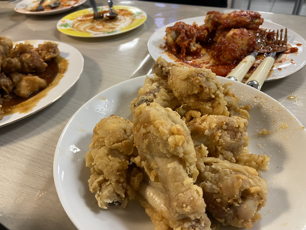 그렇게 모두 배부르게 한국 치킨을 맛본 치킨 아뜰리에가 끝이 났다. 순살을 미리 초벌튀김하길 잘했다는 생각이 들었다. 내가 마지막 봉과 윙이 제대로 튀겨진 것을 아쉬워했지만, 교장 선생님이 너무 재밌었다며 전부 다 맛있었다고 해주었다. 그렇다면 다행이라고 생각했다. 그래도 순살이 맛있었던 것은 사실이고, 내가 만든 소스들도 맛이 좋았던 것도 사실이다. 또한 치킨무도 좋았었기도 하다. 다들 대화하며 즐거워 보였고, 치킨도 끊임없이 계속 먹었었으니, 다들 좋아했던 게 맞을 것 같기도 하다. 부족함에 대한 반성을 조금만 하고, 사람들이 좋아했던 모습을 더 오래 간직해야겠다. 치킨은 역시 모두가 좋아하는 메뉴였다. 다음에 이제 뭘 알려줄까?