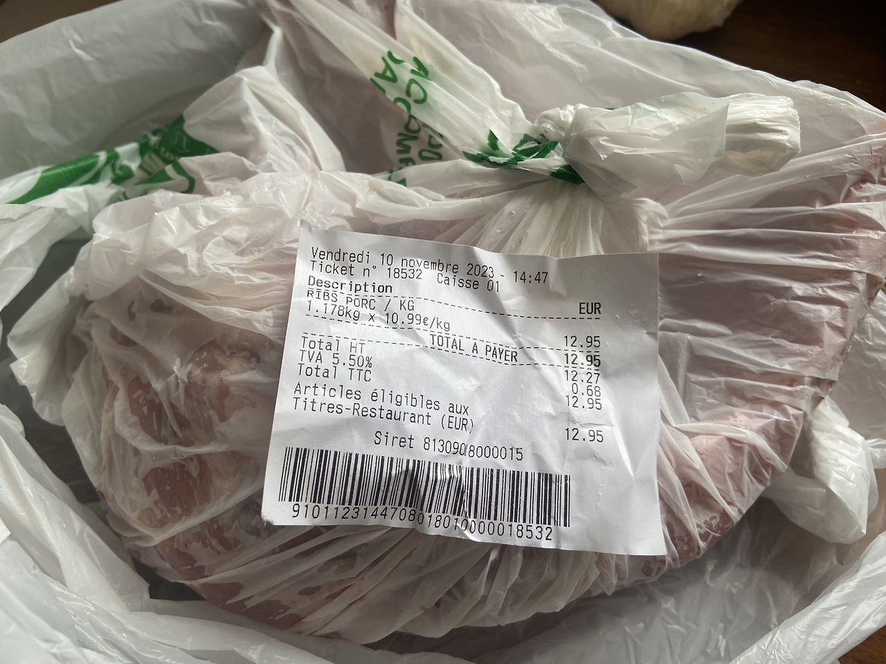 주말이 다가오는 주중에 컨디션이 좋지 않았다. 휴가를 내고 조금 쉬는 시간이 필요했다. 컨디션을 다시 회복하고, 무거운 몸을 이끌고 마트에 갔다. 세 명이 먹는데 등갈비 한 대는 너무 아쉬우니, (나도 많이 먹을 거니까) 두 대를 샀다. 1.2 kg 정도에 10유로가 조금 넘었다. 확실히 한국보다 저렴한 가격이다. 등갈비를 사 온 것 만으로 몸이 피로해져서 다시 쉬기 시작한다. 미루고 미루다가 약속 5시간 전에 정말 이제는 요리할 시간이라 일어난다.