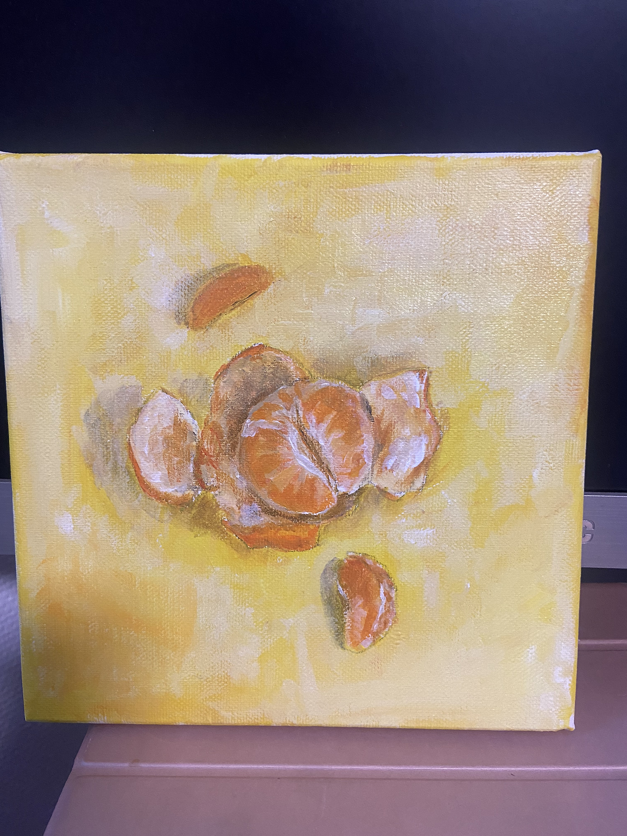 밤에 그린 그린이 맘에 안 들어서, 일찍 일어나 오늘 아침 또다시 그림을 그리고 싶었다. 이번에는 잘 그리고 싶었다. 까다 만 귤을 그려본다. 귤 과육을 그리는 것도 쉽지 않았고, 귤 속껍질이 채색이 어려웠다. 대체 어떻게 칠해야 할지 감이 안 잡혀서 느낌대로 해본다. 그래도 노란색이 쨍쨍해서 나름 귀여운 그림이 나온 것 같다.