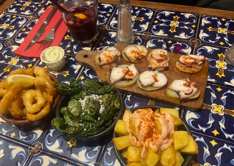 예약해둔 식당으로 간다. 스페인 타파스 식당으로 예약을 해둬서 그 곳으로 향한다. 내가 프랑스에 오기 직전에 만나고 처음 보는 거니 일년 반만이다. 시간맞춰 가보니 친구 부부는 먼저 도착해있었다. 반갑게 인사를 나눈다. 다들 그대로다. 메뉴를 살피며 타파스를 네 종류 정도 가볍게 시킨다. 친구 부부가 전에 스페인 여행을 오래해서 좋아해는 메뉴들이 이미 있는 것 같아 주문을 맡긴다. 스패니쉬니까 술은 상그리아를 시켜서 마시기 시작한다. 오징어튀김, 감자요리, 문어요리, 그리고 친구가 너무 먹고싶었다는 고추 튀김이 잠시 후 나온다. 조금씩 맛을 보며 근황토크를 한다.