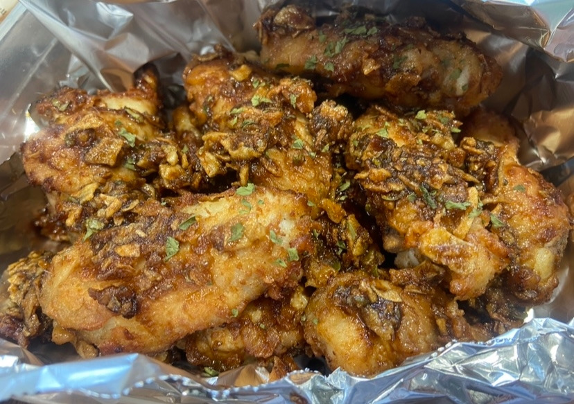 송별회 모임 장소는 교장선생님 댁이었다. 각자 먹을 요리를 한 종류씩 챙겨 오고, 함께 만두를 빚기로 했었다. 이런 모임이 있으면, 그래도 나름 요리가 취미인 사람이니 사람들이 좋아할 요리를 해야 한다는 압박감을 조금 받는다. 그래서 나의 선택은 간장마늘치킨이었다. 바로 튀겨서 내면 좋겠지만 어쩔 수 없이 집에서 만들어서 소스에 버무려갔다. 전날 남겨뒀던 등갈비찜도 챙겼다.
