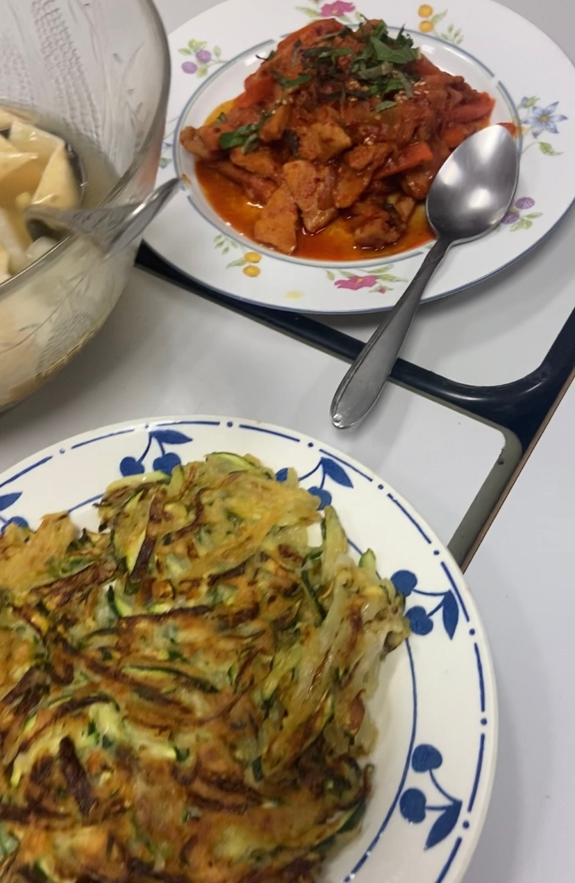 술안주는 가격이 너무 들지 않으면서 술과 어울리는 술안주를 보여줄 수 있는 메뉴들로 결정했다. 내가 정한 메뉴는 다음과 같았다. 제육볶음, 떡볶이와 튀김, 어묵탕, 콘치즈, 야채 전, 두부김치- 아뜰리에에 퇴근 후 가기 때문에 바로 당일에 요리할 시간은 없었고, 대부분 전날 미리 요리해 두고 냉장고에 넣었다가, 아뜰리에 장소로 가서 15분 정도 동안 데우면서 만들기로 했다. 금요일에 있는 아뜰리에를 위해 수요일부터 장을 보고, 목요일 저녁 미리 요리를 했다.