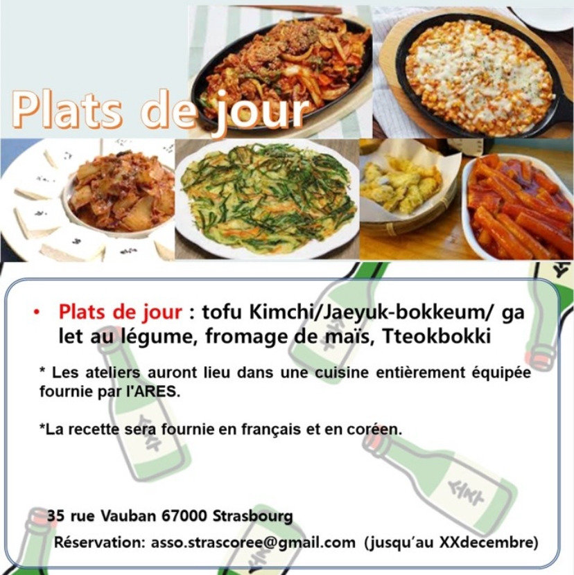 프랑스 스트라스부르에서 매달 한번씩 한국 요리와 관련된 아뜰리에를 진행하고 있다. 어쩌다 운이 좋게 이런 기회가 와서 매달 한 번씩 메뉴를 정해서 진행하고 있다.
