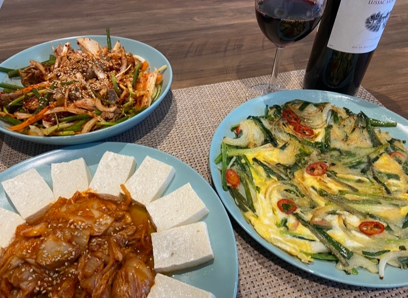 3월 31일, 3월의 마지막 날 금요일- 날 위한 술상을 차렸다. 메뉴는 막걸리 안주인데 술은 와인이었다. 프랑스 느낌 나는 건 와인뿐이다. 가끔 친구들이 묻는다. "너 프랑스에 있는 거 맞아?" 응 맞아...