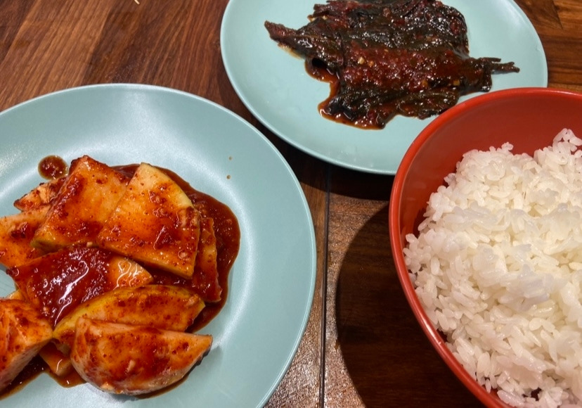 3월 1일, 언제나처럼 아시아마켓을 둘러보다가 한국 무를 발견했다! 1년이 넘게 스트라스부르에 살면서, 처음 들어온 한국 무였다. 여기 무로도 깍두기 같은 걸 만들 수는 있지만, 한국 무처럼 단단하지가 않고 단맛도 적다. 너무 반가워 무를 3개나 사들고 왔다. 그렇게 사온 무로 섞박지를 만들었다. 한국 친구가 준 깻잎김치까지 곁들여, 김치 2종과 흰쌀밥을 먹었다. 스트라스부르에 와서 차려먹은 밥 중 가장 한국인다운 밥상이었다.