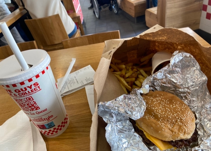 3월 18일, 가끔 시내에 있는 파이브가이즈에 간다. 모든 토핑을 추가해도 가격 차이는 없지만 난 심플한 게 좋다. 치즈버거를 시키고 추가하는 건 보통 볶은 양파정도에 소스는 마요/케첩 또는 머스터드/케첩이다. 버거는 몸에 안 좋게 먹을수록 맛있더라. (개취!)
