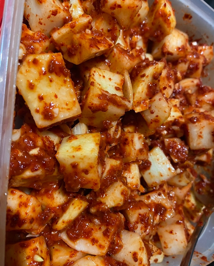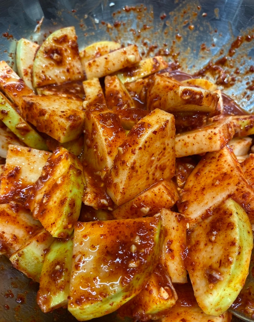 3월 14일, 깍두기를 담갔다. 깍두기에 내가 좋아하는 미역국을 끓여 곁들였다. 미역국은 언제 먹어도 맛있다.