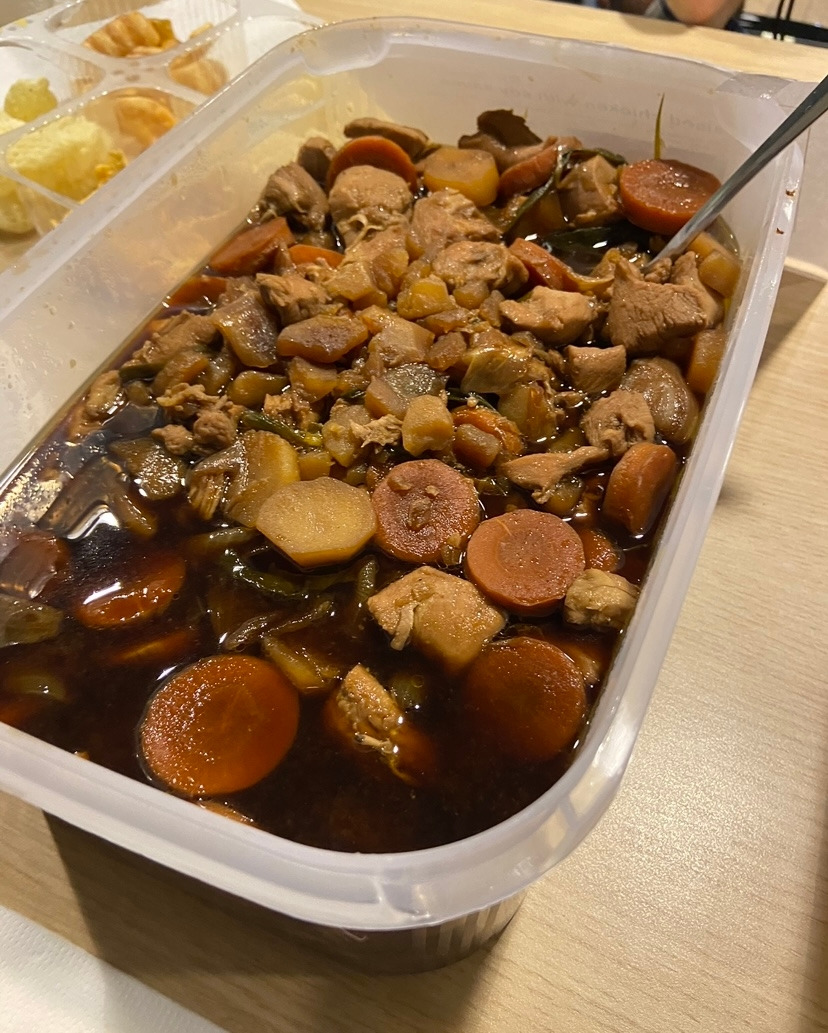 행사는 금요일 저녁 6시였다. 먼저 목요일에 장을 모두 봐뒀다. 재료비용은 모두 제공해 줬고, 30명분 정도의 요리를 준비하면 된다고 했다. 미리 짜둔 메뉴들을 바탕으로 요리 순서들을 먼저 다 계획해 뒀다. 행사 당일 일찍 퇴근하여 대략 2시간 동안 조리를 마치고 트램을 타고 이동해야 했다. 연구실 동료가 도와준다고 해서 조금 수월할 것 같았지만, 전날 미리 어느 정도 재료 손질은 마쳐두었다. (양파나 마늘 까기 같은 것들) 금요일 2시 반에 일찍 퇴근을 했다. 연구실 동료와 우리 집으로 갔고, 모두 계획해 둔 순서대로 요리를 시작했다. 메뉴는 찜닭, 비건잡채, 김치볶음밥, 제육볶음과 밥, 쌈, 그리고 미리 만들어 둔 팥/시나몬설탕 호떡이었다. 먼저 시간이 가장 오래 걸리는 찜닭부터 한다. 내가 찜닭을 하는 동안 동료에게 잡채를 위한 재료 손질을 부탁했다. 찜닭을 냄비에 안치고 끓게 놔둔 후, 이제 잡채를 한다. 채소들을 모두 한데 섞어 볶고, 아침에 미리 불려두고 갔던 잡채를 살짝 삶아내고는 간장, 설탕, 참기름에 모두 한데 섞어준다. 간단하게 비건 잡채가 완성이다. (고기 대신 버섯 넣음) 그런 후, 전날 미리 해뒀던 찬밥으로 김치볶음밥을 만든다. 마지막으로 제육볶음을 볶아내고, 쌈채소를 씻고, 쌈밥을 위해 주먹밥으로 밥을 조금 굴려준다. 요리를 하는 동안 오븐에 전날 미리 구워뒀던 호떡을 데워준다. 모든 게 딱 2시간에 계획대로 끝났다. 이제 모두 통에 담고 챙겨야 한다. 6시까지 행사 장소로 트램을 타고 가야 한다. 트램을 타고 가는 길에 조금 늦어졌다. 미리 연락하여 과자 같은 주전부리와 음료 세팅을 부탁하고 6시 20분쯤 도착했다.