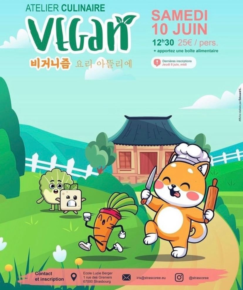 프랑스는 7, 8월은 바캉스 기간으로 대부분 긴 휴가를 떠난다. 관공서 서류들도 이때 신청을 하면 뭐든 다 늦고, 모든 게 예약을 잡기도 힘든 시기이다. 그러니 당연히 한글학교도 방학에 들어간다. 방학 전에 할 수 있는 마지막 쿠킹 클래스였다. 두 번의 쿠킹 클래스가 모두 잘 진행되고 사람들 반응도 좋았었기에, 방학이 끝나면 더 할 수도 있지 않을까 하는 기대감을 갖고 있었다. 바캉스 전의 마지막 클래스 주제는 “한국 비건 요리”였다. 스트라스부르에 채식주의자가 많다고 주변 친구에게 전해 들었다. 학교 식당에서 샐러드, 디저트는 다양한 메뉴에서 고를 수 있고, 보통 메인 메뉴는 하루에 세 가지인데 그중 하나는 꼭 베지테리안 메뉴이다. 비건까지는 아니다. 그래도 한국에서 학식에서 채식 메뉴를 따로 선보이지 않는다는 걸 생각해 보면, 이곳의 채식 인구가 더 많기도 하고, 확실히 다양성을 더 생각하는구나 싶기도 했다.