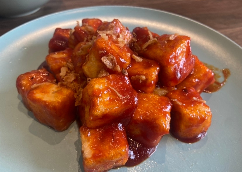 먼저 감자전을 위해 감자를 갈았다. 하나하나 직접 강판에 가는데 시간이 걸리기 때문이다. 혼자 갈다가 너무 힘들어서 지원자를 받아서 진행했다. 감자를 갈고, 전분이 가라앉길 기다리며 다른 요리를 진행했다. 비건 잡채를 준비한다. 재료들을 하나하나 손질하기 시작한다. 양파, 당근, 파프리카, 버섯을 모두 채를 썰어 준비한다. 보통은 재료 하나하나 나눠서 볶아주지만, 사람들에게 보다 쉽게 알려주기 위해, 단단한 재료부터 먼저 볶으며 다른 재료들을 하나하나 추가해 가는 모습으로 설명해서 알려준다. 당면은 일찌감치 물에 불려두었다. 그런 후, 끓는 물에 당면을 삶아내어, 팬에 옮겨 담고 간장, 설탕, 참기름으로 양념해서 버무려낸다. 다른 메인 메뉴로는 두부강정이 있다. 두부 강정은 간단하다. 두부를 잘라서 표면에 전분가루를 입혀주고는 팬에 기름을 두르고 바삭하게 구워낸다. 그런 후, 내가 여러 조합을 해보며 내 입맛에 맞게 알아낸 양념치킨소스용으로도 적합한 양념소스 재료를 한데 섞어 냄비에서 한번 부르르 끓여주고 구워낸 두부를 소스에 버무리면 완성이다. 바삭하게 먹어야 하는 감자전을 마지막으로 구워내었다. 사람들에게 하나하나 나줘줄 수 있게 작은 사이즈로 구워냈다. 개인적으로 감자전을 작게 구워내는 것을 선호한다. 그래야 바삭한 테두리가 더 많기 때문이다. 구워낸 감자전을 바로 시식하게 했다. 다들 고개를 끄덕이며 먹었다. 감자전은 기본적으로 감자를 갈아서 간을 하고 구워낸 것이니, 어차피 모두 익숙한 맛일 것이다. 다만 식감이 그들의 감자요리와 조금 다를 뿐이다. 다들 맛있다며 잘 먹었고, 그다음으로 파를 썰어 부침가루를 이용해 간단 파전을 만들어서 맛보게 했다. 나는 보통 부침가루를 사용하지만, 사람들을 위해 레시피 노트에 부침가루를 만드는 방법을 적어서 제공했다. 두부 강정과 잡채도 모두 맛보게 했다. 두부강정이 집에서 할 때처럼 바삭하게 구워지지 않아서 아쉬웠지만, 잡채는 맛있게 잘 되었다. 잡채는 대부분 좋아하는 것 같다.