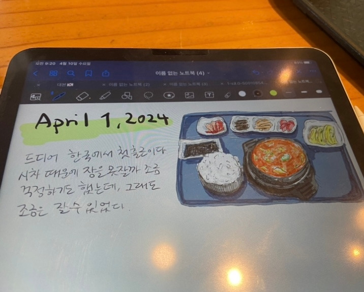 지금까지 북촌 한옥마을을 가본 적이 없어서, 이날 북촌 한옥 마을에 가보기로 계획을 해뒀기에, 조금 늦잠을 자고 일어나서는 버스를 타고 북촌 한옥 마을로 간다. 어딘지 몰라 사람들이 가는 길을 그냥 따라 걷는다. 점점 사람이 많아지고, 오르막 길이 많아 힘들다. 별로 감흥이 없다. 굳이 이걸 보러 와야 하나 하는 생각이 들었다. 카페에서 아이패드에 그림을 그린다. 아이패드로 그림을 그리고, 일기를 작성해 본다. 아이패드로 드로잉을 하지 않는 편인데, 프랑스에서 돌아오며 물감들을 많이 버리고 와서 가진 것이 별로 없다. 새로 사기 전까지는 아이패드를 이용해야 할 듯하다.