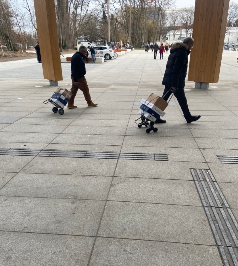 한 시간 정도 트램을 타고 행사장 근처에 도착했다. 힝 사장 바로 입구에서 만나기로 해서 입구를 찾아가는데, 사람들이 와인 박스를 끌며 나오는 방향으로 계속 가니 입구에 도착했다. 사람들이 사는 양이 어마어마했다. 노부부가 박스로 네 박스를 수레에 끌고 가고, 어떤 사람들은 업장에 가져가는 건지 정말 어마어마한 양을 가지고 갔다. 가장 흔하게 보이는 게 두 박스였다. 역시 와인의 나라인가 보다. 이 사람들을 보니, 내가 너무 준비 없이 왔나 하는 생각이 들면서, 매년 하는 행사이니 작년에 알았다면 나도 와인을 잔뜩 샀을 텐데 하는 아쉬움이 남았다. 프랑스에서 떠날 때가 되니, 하지 못한 것들이 하나하나 아쉬움으로 남는다. 남은 시간만큼 최대한 해봐야지 싶지만, 있었던 기간에 비해 남은 시간이 너무 짧다.
