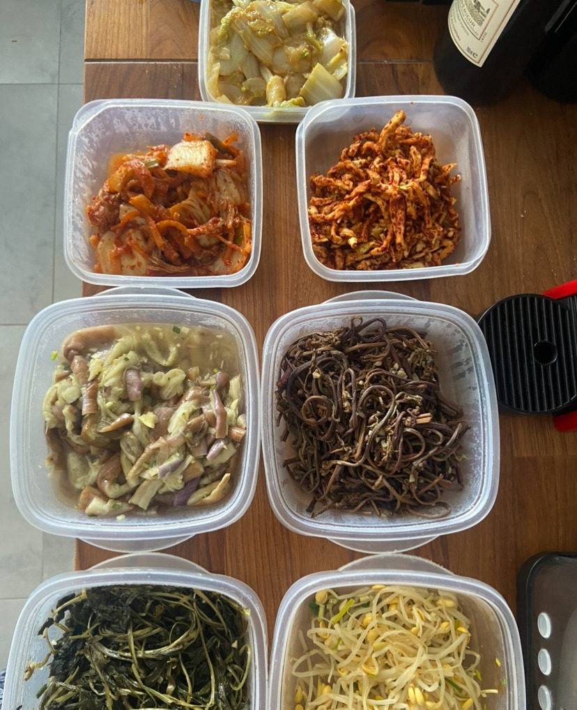 초대한 날은 일요일 점심이었기에 요리하기까지 시간은 충분했다. 아침에 일어나서 요리하기 시작한다. 본식 2에서 보여줄 반찬들을 먼저 하기 시작한다. 다른 외국인이었다면 굳이 준비하지 않았을 건고사리를 전날 미리 불려두었다. 이 친구는 이색적인 식재료에도 관심이 많기에 그런 그에게도 고사리는 흥미로울 거라 생각했기 때문이다. 불려둔 고사리를 충분히 삶아낸 후, 양념에 버무려 고사리나물을 완성한다. 그다음으로 한국에 다녀오며 사 왔던 무말랭이를 물에 불려 무쳐낸다. 무말랭이도 처음 보는 조리법일 거라 생각되었기 때문이다. 한국에서 가져온 건취나물도 미리 불려두었던 것을 삶아내어 나물로 무쳐낸다. 냉장고에 있는 가지로 한국식 가지나물을 하고, 외국인들에게 낯설 콩나물도 무쳐낸다. 배추가 있기에 배추도 삶아서 된장에 무쳐 배추된장나물을 하고는 배추김치를 볶아 볶음김치까지 준비한다. 반찬은 준비가 끝났다.