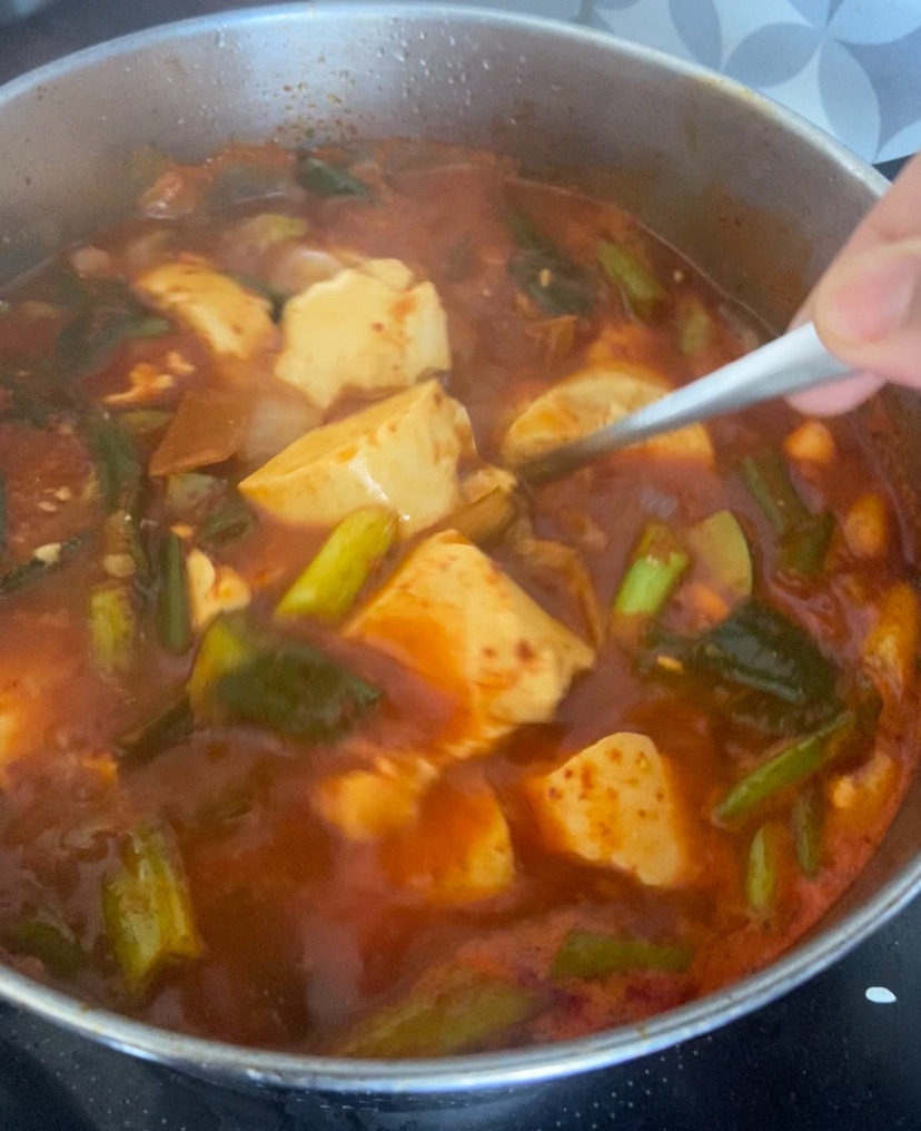 국대신 찌개로 순두부찌개를 준비했다. 개인적으로 맛이 충분히 자극적이면서 매력적인 맛이라 처음 맛보는 사람도 맛있게 먹을 수 있을 거라 생각했다. 게다가 본식 1에서 한국식 바비큐로 고기를 먹을 거기에 그렇게 묵직한 국이나 찌개보다는 조금은 가벼운 느낌으로 선보이고 싶었다. 순두부찌개도 서둘러 끓여낸다.