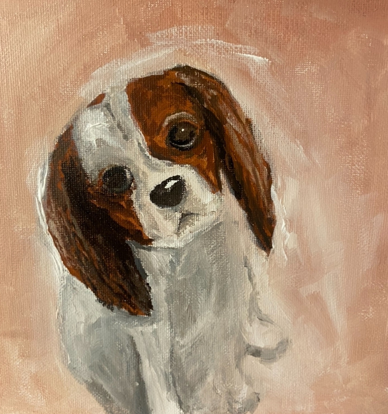 인터넷에서 귀여운 킹 찰스 스패니얼 사진을 발견했다. 오늘은 이걸 그려야지! 하는 마음으로 사진을 저장했다. 스케치를 한다. 스케이를 하면서부터 사진상에서 흐릿하게 보이는 몸통 부분이 스케치하는 게 힘들었다. 채색에 들어가면 어떻게 된 되겠지 하는 생각으로 일단 물감을 짜고 붓을 든다.
