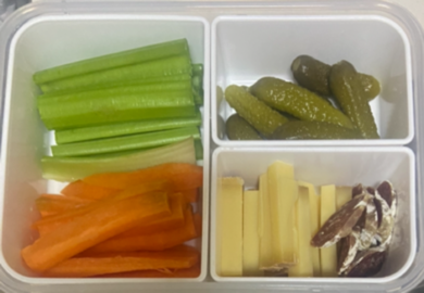 이제 간식으로 먹을 추억의 메뉴들을 챙겨 담는다. 꼬르니숑도 넉넉히 담고, 치즈도 잘라 넣는다. 치즈는 프랑스에서 사 온 꽁떼치즈이다. 소시쏭도 잘라 옆에 함께 둔다. 신선한 채소스틱도 넉넉히 담는다. 간식 도시락도 완성되었다. 너무 많이 챙겨 먹나 싶기도 하지만, 먹고 싶은데 어쩌겠는가. 먹어줘야지.