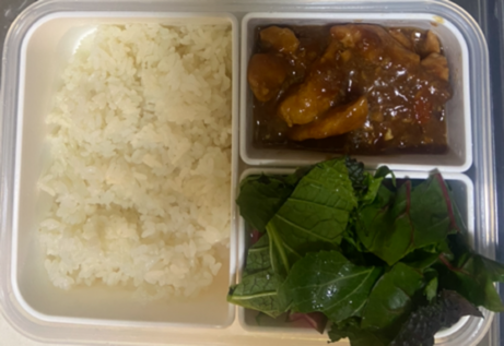 먼저 점심 도시락을 싼다. 전날 미리 만들어 둔 내가 잘 만드는 돼지고기 조림이다. 돼지고기를 먼저 볶아주다가 튀긴 양파, 튀긴 마늘을 넣고 함께 볶은 후, 간장, 설탕, 물을 넣고는 뭉근하게 1시간 이상 조려주면 된다. 부드러우면서 감칠맛이 아주 좋은 요리이다. 밥을 한가득 담고 (조금 많은 것 같지만 다 먹는다), 고기를 담고 한쪽에 샐러드 채소를 담는다. 드레싱 한포도 챙긴다.