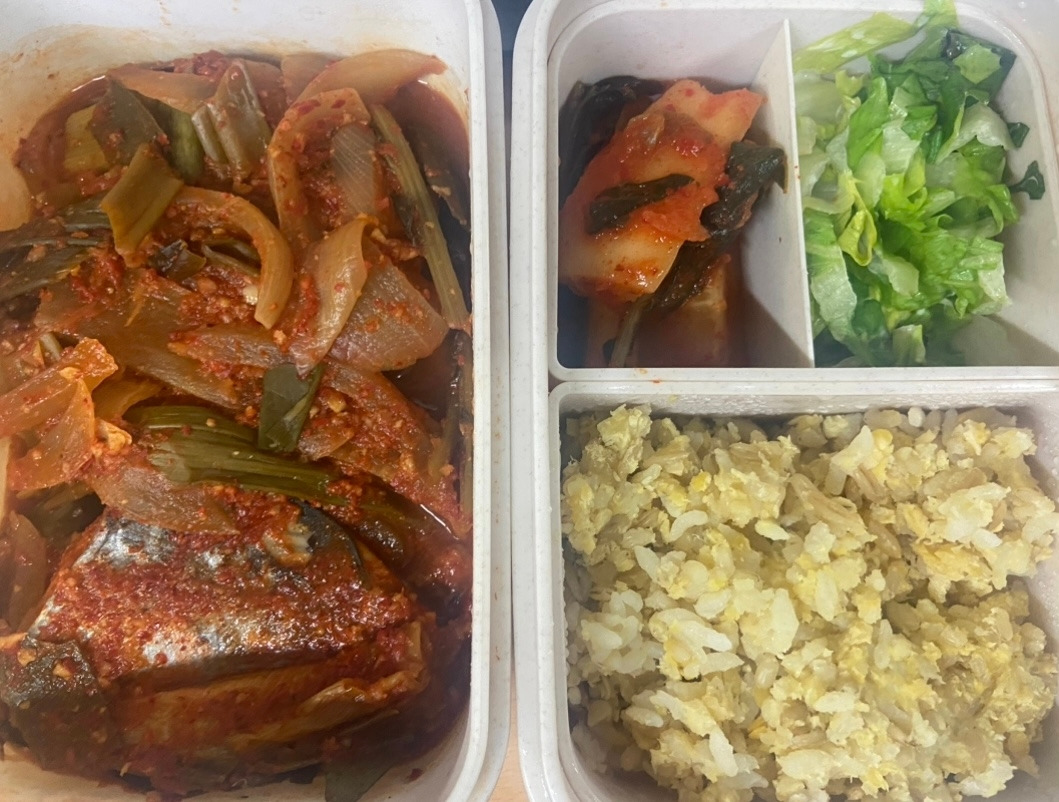 도시락 칸에 남았다. 담을 것이 없었다. 냉장고가 비어 가고 있었다. 아직도 남아있는 총가무를 잘라한 칸을 채우고, 다른 칸에 샐러드채소를 잘라 넣어 채워 넣었다. 너무나도 억지로 채운듯한 도시락 비주얼이다. 하지만 생선조림이 워낙 맛있게 됐기에 괜찮을 것 같았다.
